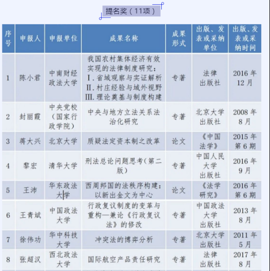 第八届钱端升法学研究成果奖获奖名单(节选)