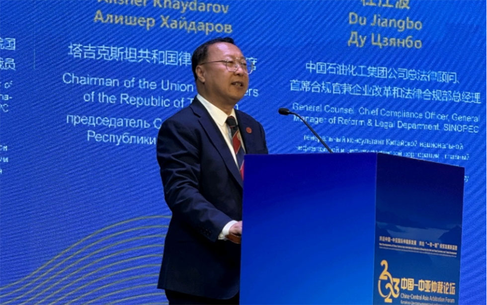 圆桌讨论环节由王瀚主持。塔吉克斯坦律师协会会长Alisher Khaydarov,中国石油化工集团公司总法律顾问、首席合规官兼企业改革和法律合规部总经理杜江波,孟加拉国际仲裁中心代表、孟加拉最高法院出庭律师Ajmalul Hossain,中国交通建设集团有限公司法律风控部总经理助理曹红程,中国电力国际有限公司法律与风险管理部/内控审计部总经理黄慧娜,吉尔吉斯斯坦中亚美国大学副教授Natalia Alenkina分别就仲裁助力新兴产业发展、科技创新与仲裁等多元争议解决方式、跨境投资贸易与法律风险防范等内容进行了分享与交流。