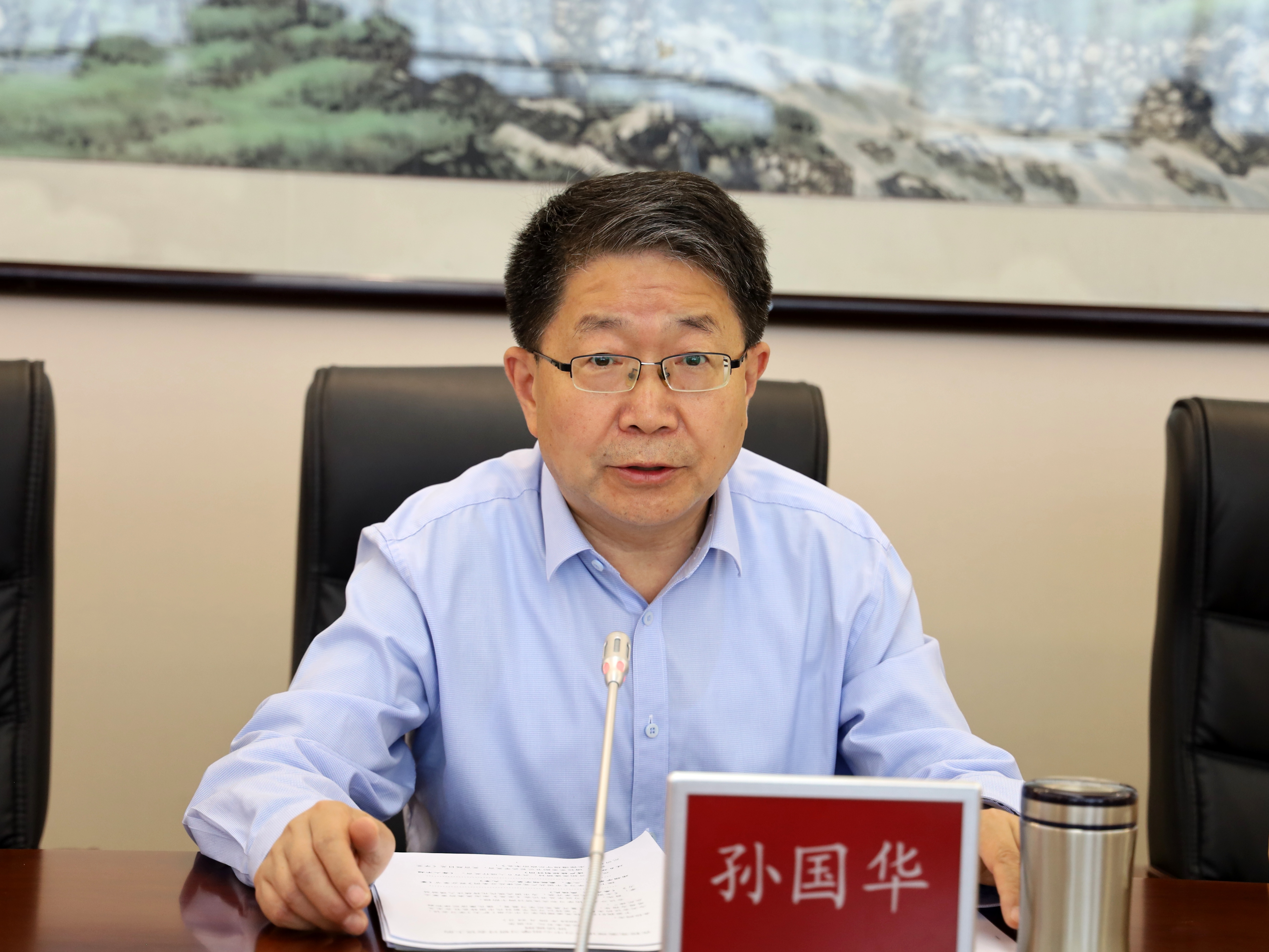 5月24日,校党委理论学习中心组在长安校区校务楼第二会议室召开学习研讨会议。校党委书记孙国华主持。