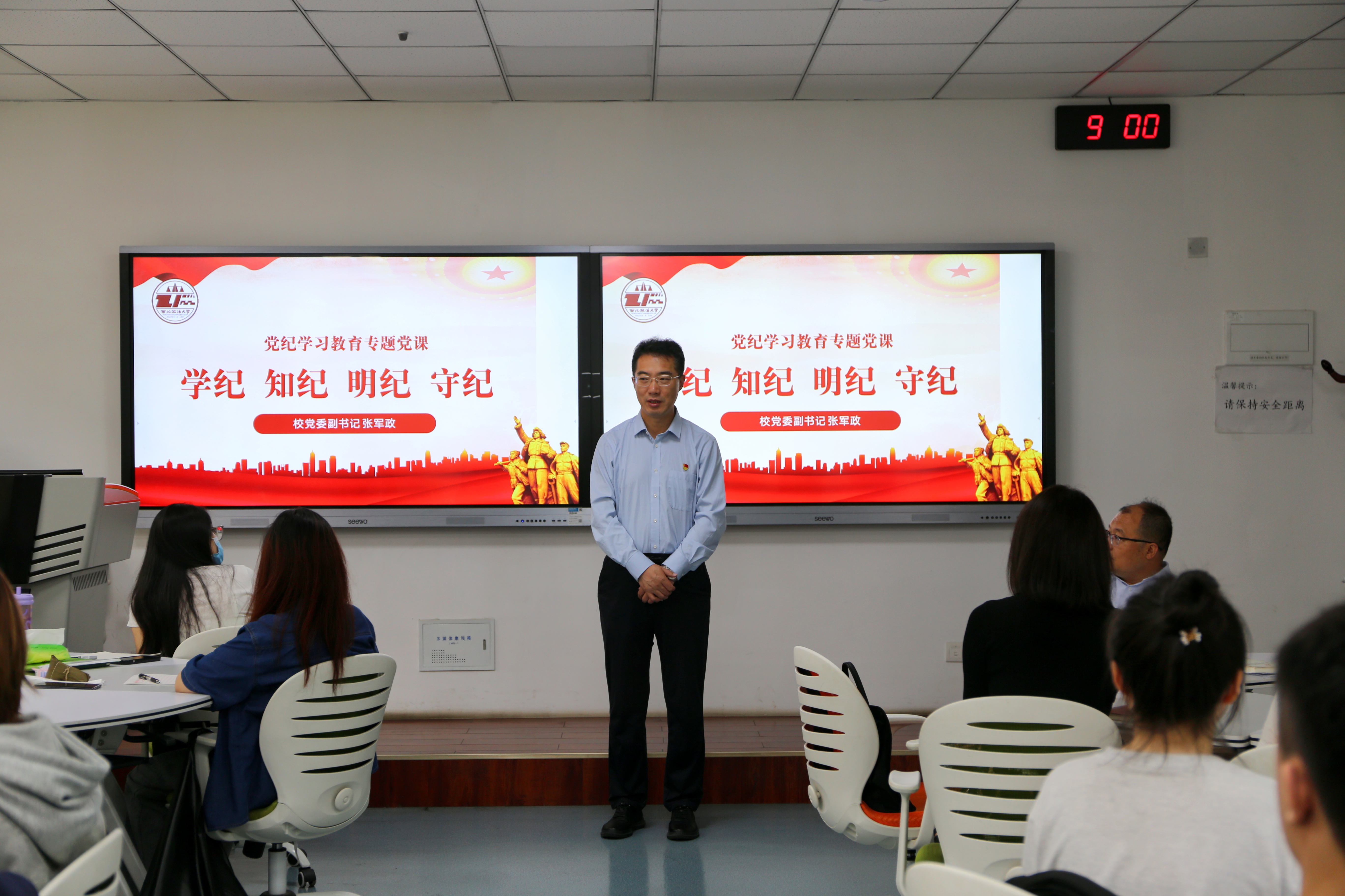6月8日上午,校党委副书记张军政在5号教学楼201教室为民商法学院学生党员和入党积极分子讲授党纪学习教育专题党课,学院党委书记朱茂主持。