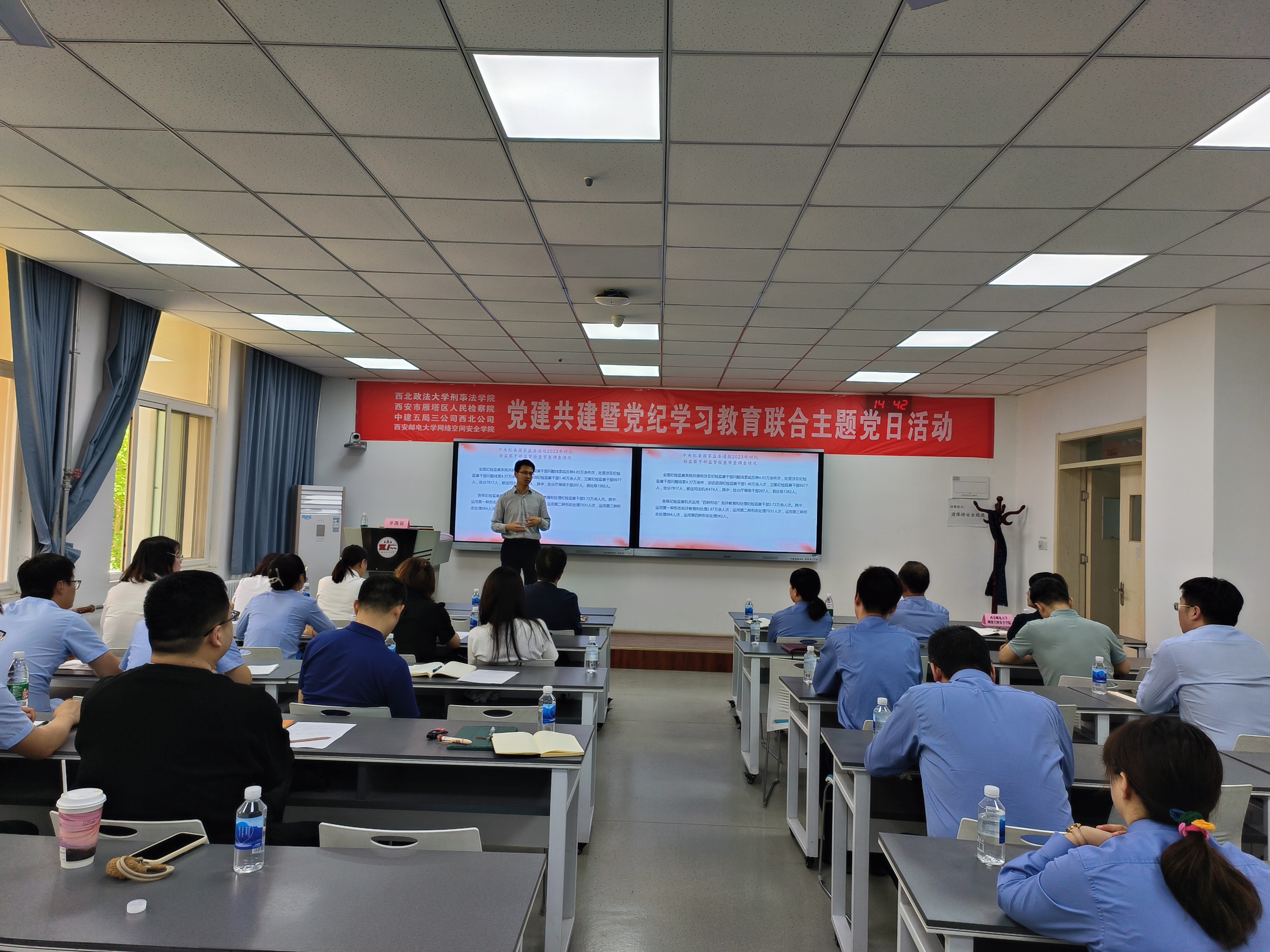 为进一步学习贯彻习近平总书记关于党纪学习教育的重要讲话和重要指示精神,落实校院关于党纪学习教育的相关工作部署、加强学院教职员工师德师风建设、增强党员干部的底线意识。4月25日,学院联合党建共建单位西安市雁塔区人民检察院、中建五局三公司西北公司、西安邮电大学网络空间安全学院开展主题党日活动。院党委书记孙学龙主持活动。