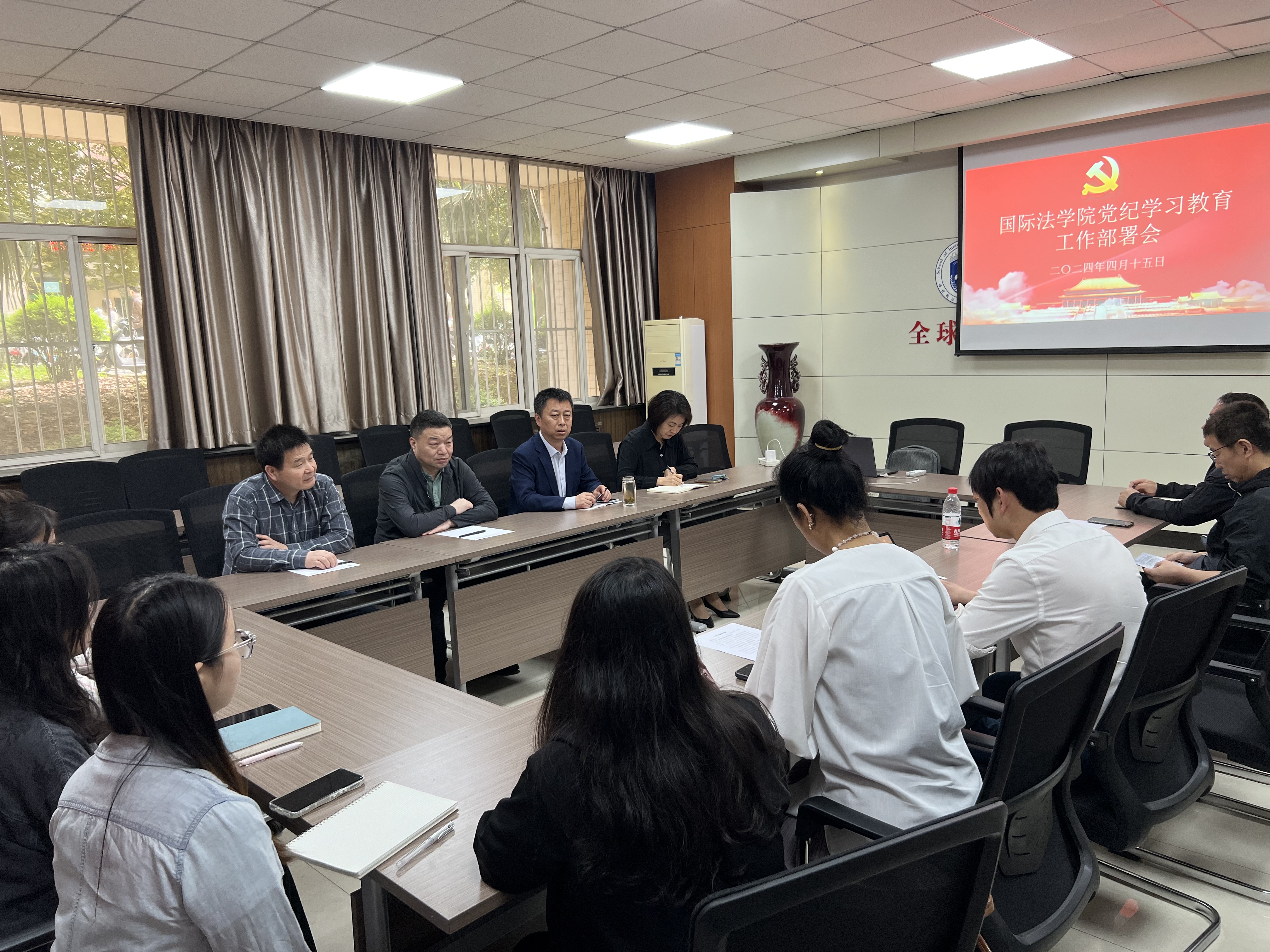 为深入学习贯彻习近平总书记关于党纪学习教育的重要讲话和重要指示精神,落实学校党委会(扩大)会议有关党纪学习教育的部署要求,4月15日下午,国际法学院党委召开党纪学习教育工作部署会。学院党委书记李立主持会议,学院全体党委委员、各党支部书记参加会议。
