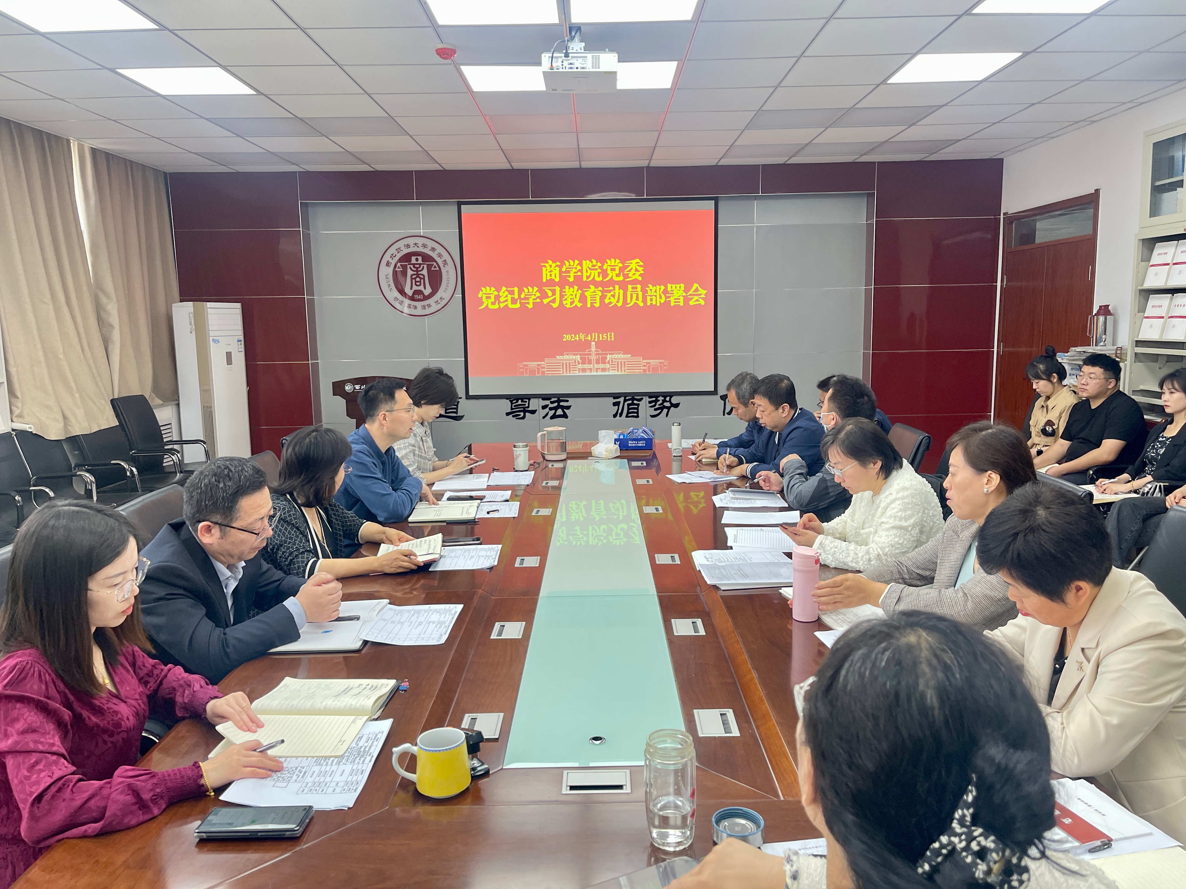 4月15日,商学院党委召开扩大会议,动员部署党纪学习教育工作。院领导班子成员、党委委员,各支部书记、系部主任,全体学工干部、行政干部参加会议,院党委书记赵参主持会议。