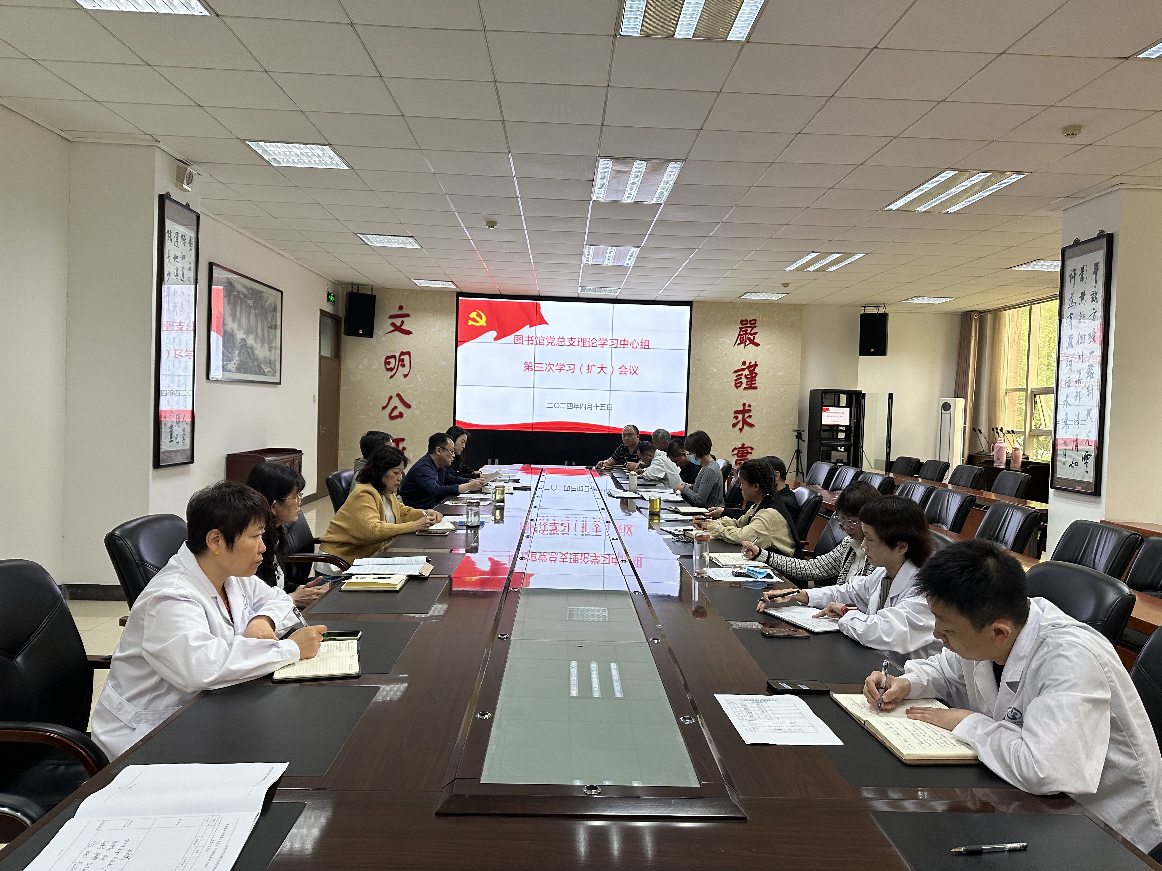 4月15日上午,图书馆党总支理论学习中心组(扩大)在长安校区图书馆召开第三次学习会议暨党纪学习教育动员会,图书馆党总支理论学习中心组全体成员参加,图书馆党总支书记翁晓磊主持会议。
