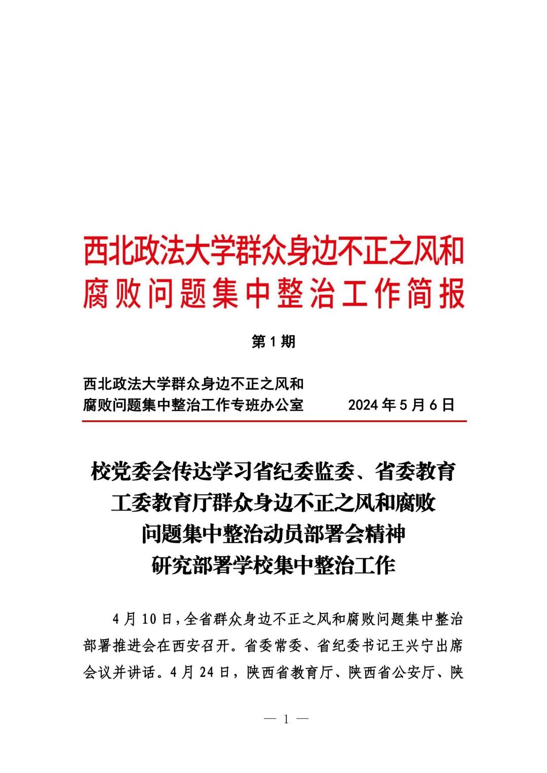 beat365平台官方网站群众身边不正之风和腐败问题集中整治工作简报第一期