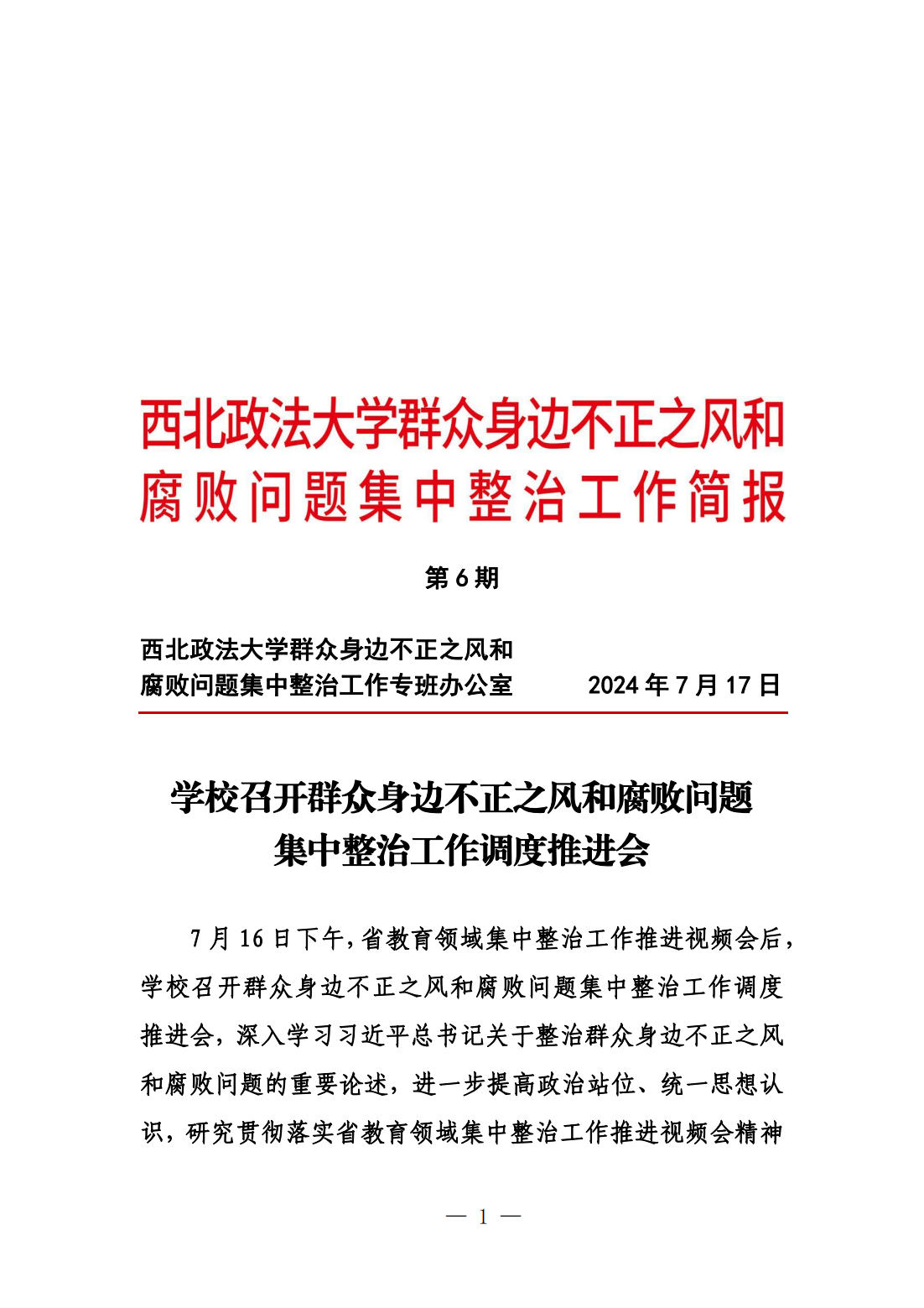 beat365平台官方网站群众身边不正之风和腐败问题集中整治工作简报第六期