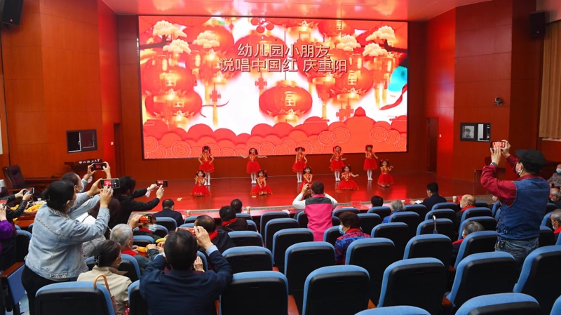 幼儿园小朋友们表演舞蹈《说唱中国红》送上祝福;居住省外的孟繁琨、吴明童等5人通过视频向大家致以节日问候;王海鸿、程瑞、谢斌演唱京剧毛泽东词作《忆秦娥•娄山关》;现场采访姜淮超、赵灵娥夫妇;10多位老同志联唱《年轻的朋友来相会》、《革命人永远是年轻》。文艺表演异彩纷呈,活动现场节日气氛欢乐热烈。