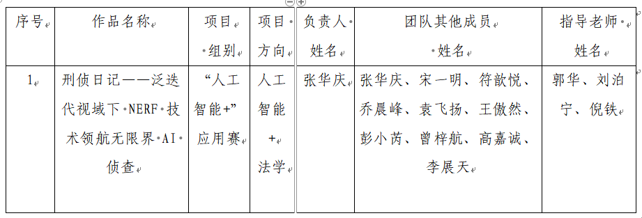 beat365经济法学院(知识产权学院)2023级学生袁飞扬(学号:202310640304)参与的中央财经大学项目《刑侦日记——泛迭代视域下 NERF 技术领航无限界 AI 侦查》,拟推荐为第十九届“挑战杯‘全国大学生课外学术科技作品竞赛’人工智能+”应用赛参赛作品。根据组委会要求,现将参赛作品信息予以公示,具体信息如下: