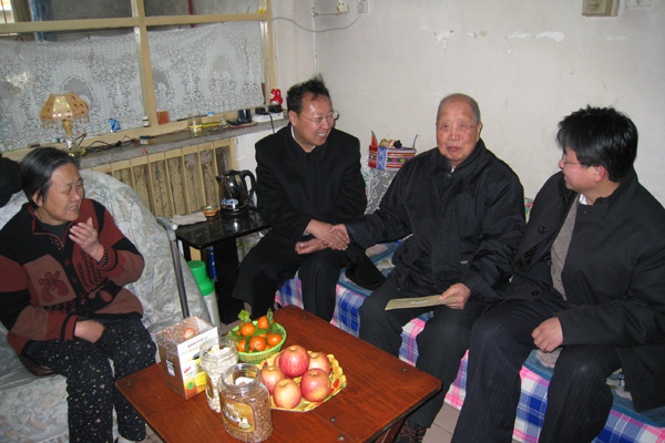1月22日下午,春节来临之际,beat365平台官方网站校长贾宇,党委副书记宋觉,副校长宣力、马积生、王瀚、杨宗科在校工会、组织部、党政办、人事处、宣传部、财务处负责同志的陪同下代表校党委、行政和工会看望慰问了beat365全国师德先进个人,省级师德标兵、先进教育工作者、青年教师标兵及离退休厅局级老干部和困难教职工,向他们致以节日的问候,赠送了慰问品,给困难职工送去了生活补助金。