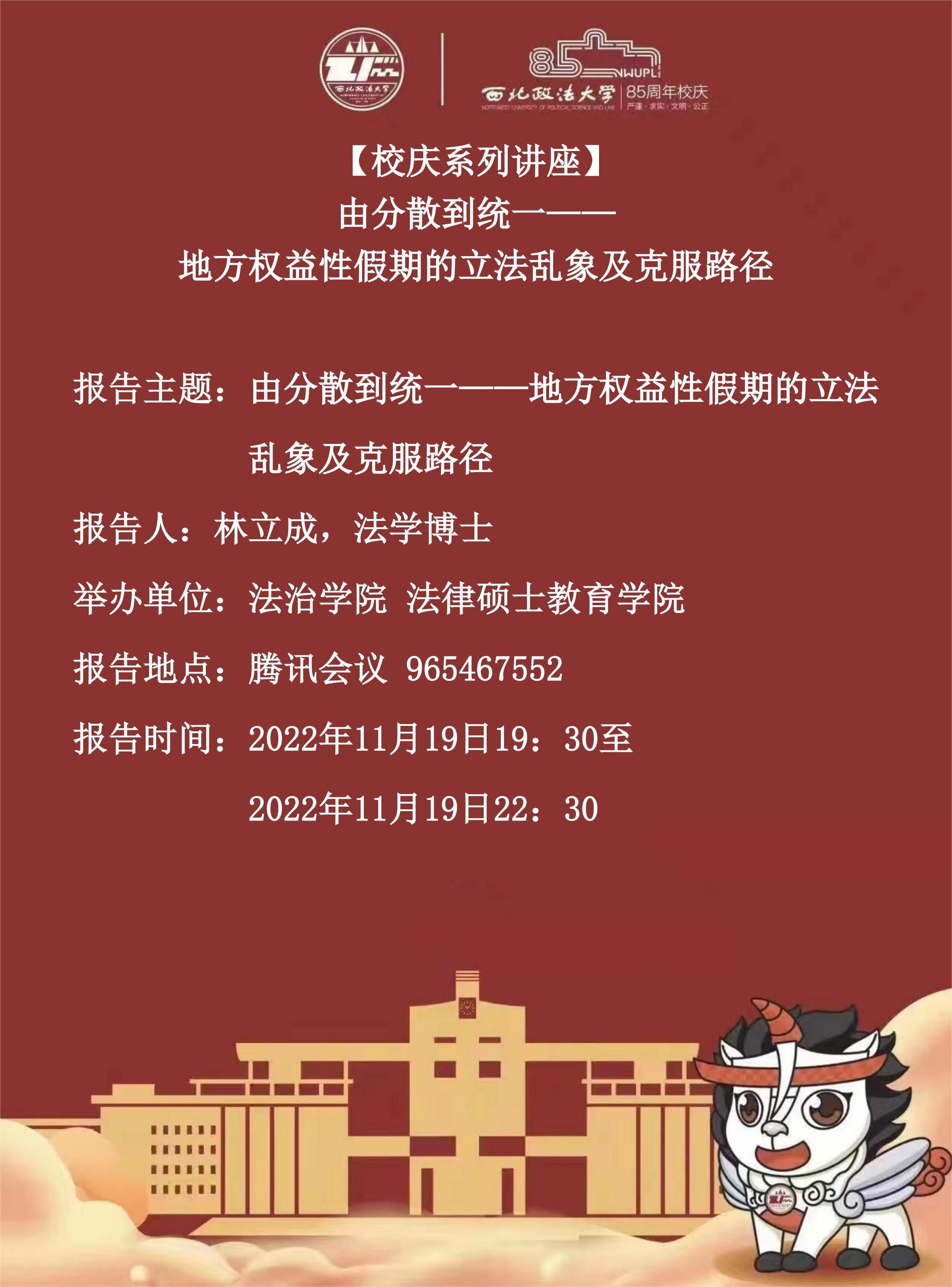 【校庆系列讲座】由分散到统一——地方权益性假期的立法乱象及克服路径