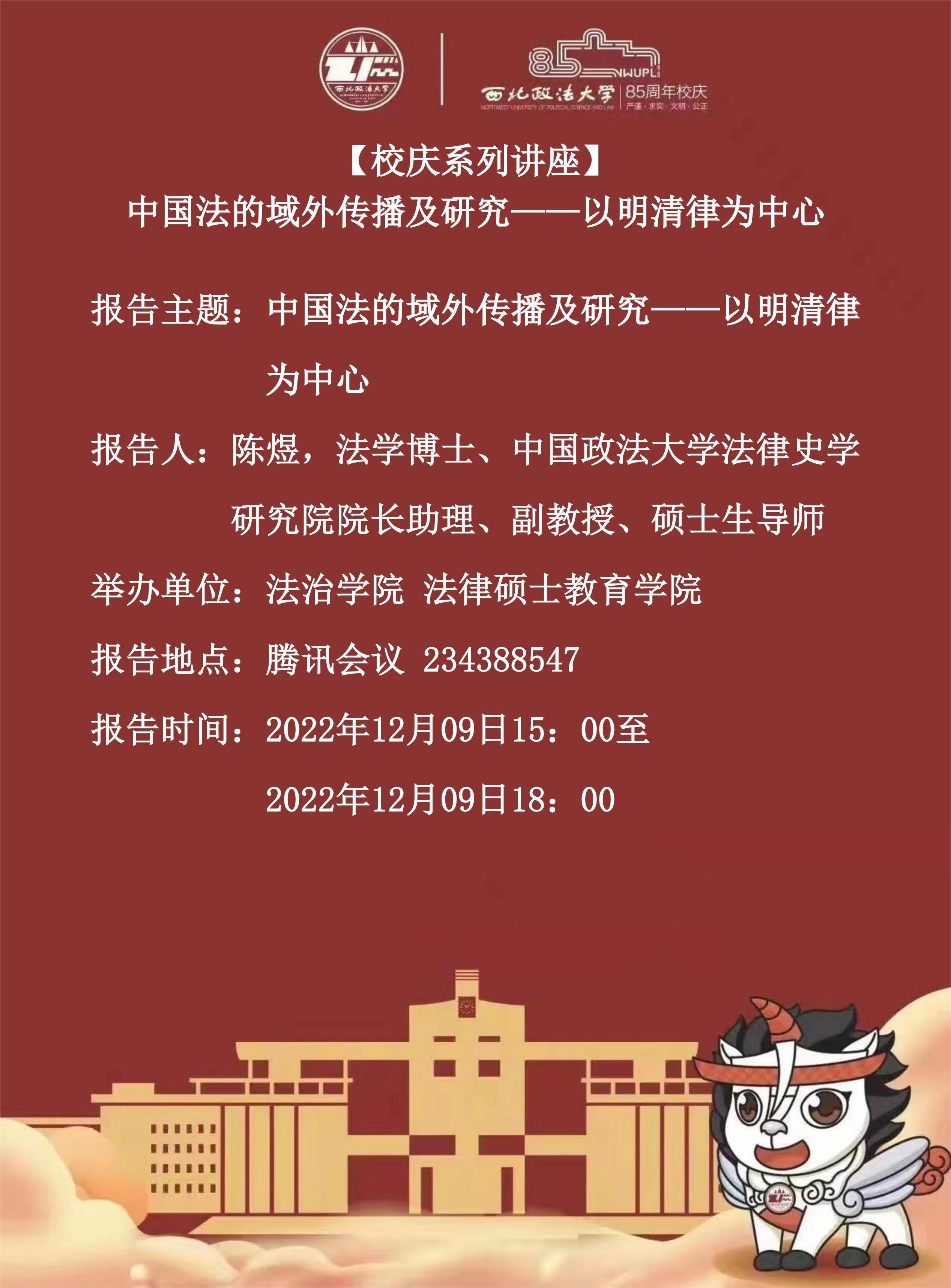 【校庆系列讲座】中国法的域外传播及研究——以明清律为中心