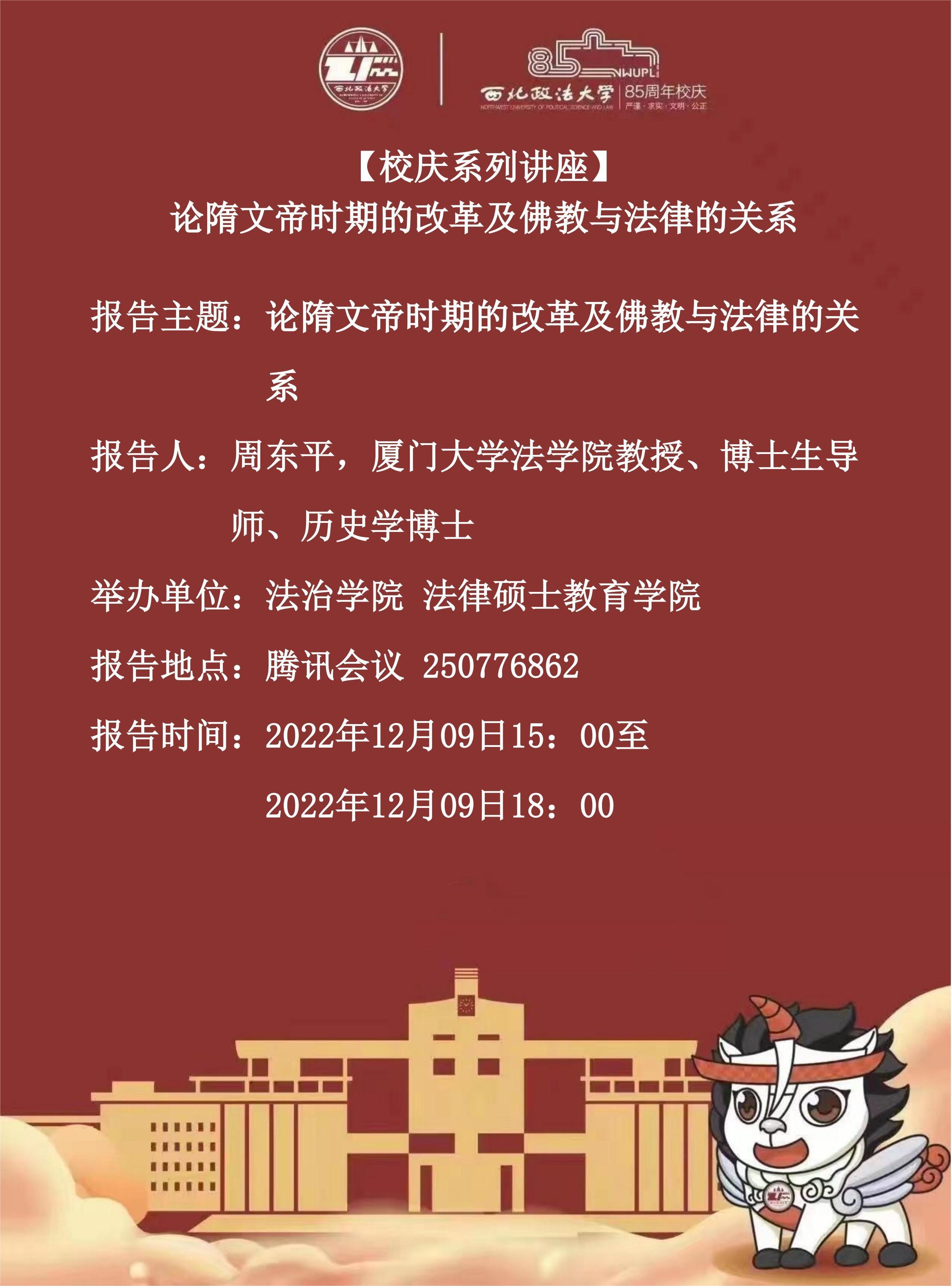 【校庆系列讲座】论隋文帝时期的改革及佛教与法律的关系