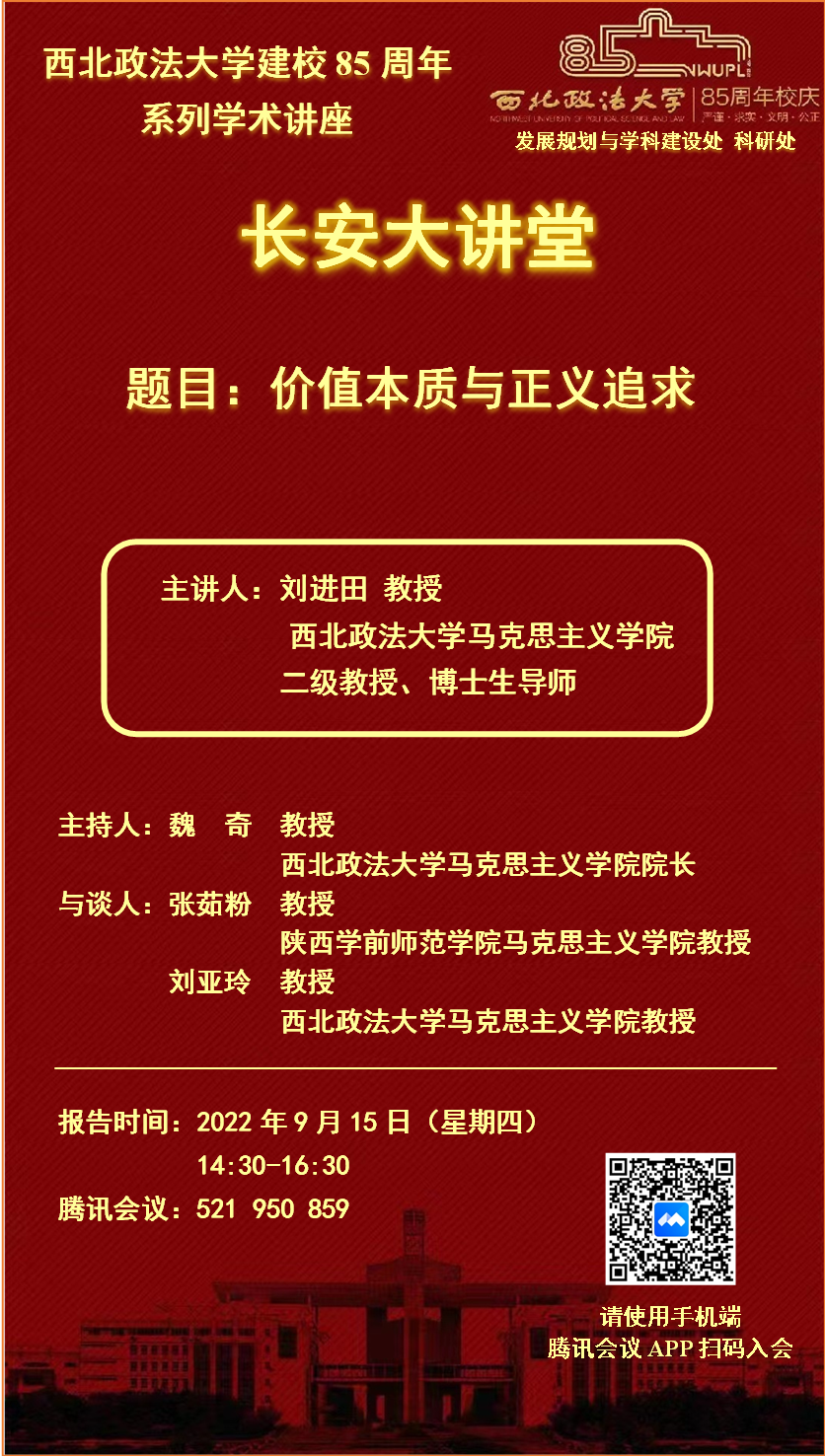 【长安大讲堂】【校庆系列讲座】价值本质与正义追求