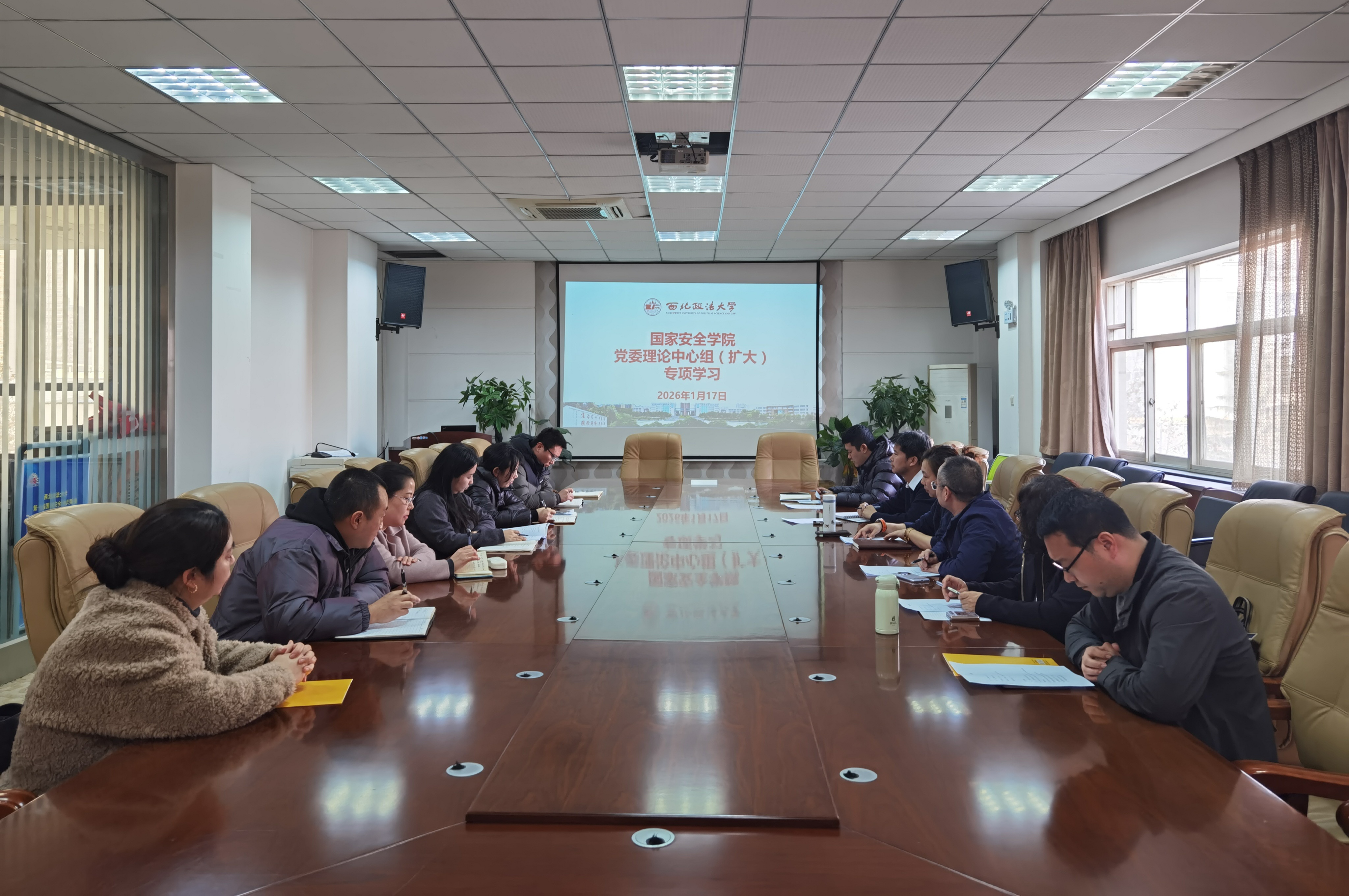 1月17日,国家安全学院党委召开理论学习中心组(扩大)学习会议,中心组成员、全体科级干部参会,学院党委书记王聪主持会议。 会议集体学习习近平总书记在二十届中央纪委五次全会上发表的重要讲话精神,学习2026年全国教育工作会议精神,传达学习学校第六届教职工代表大会和学校“十五五”规划工作报告。围绕学习内容,参会人员结合工作实际逐一进行交流发言。 会议强调,全院上下要进一步提高政治站位,加强党的全面领导,坚持把党风廉政建设与学院中心工作同部署、同推进、同考核,以政治建设引领学院各项工作提质增效;要聚焦立德树人根本任务,紧密结合学院工作实际,深化教育教学改革,优化人才培养体系,强化学科专业建设,提升科研创新和社会服务能力,为教育强国建设贡献学院力量;要强化使命担当,将学校教代会和“十五五”规划各项决策部署细化为工作举措,健全工作部署、落实、反馈的全链条工作机制,强化工作闭环管理,以真抓实干的优良作风推动学院事业高质量发展。 会上还宣布了学院科级干部任职名单。 (供稿:国家安全学院(反恐怖主义法学院) 撰稿:王卓 张婕妮 审核:王聪)