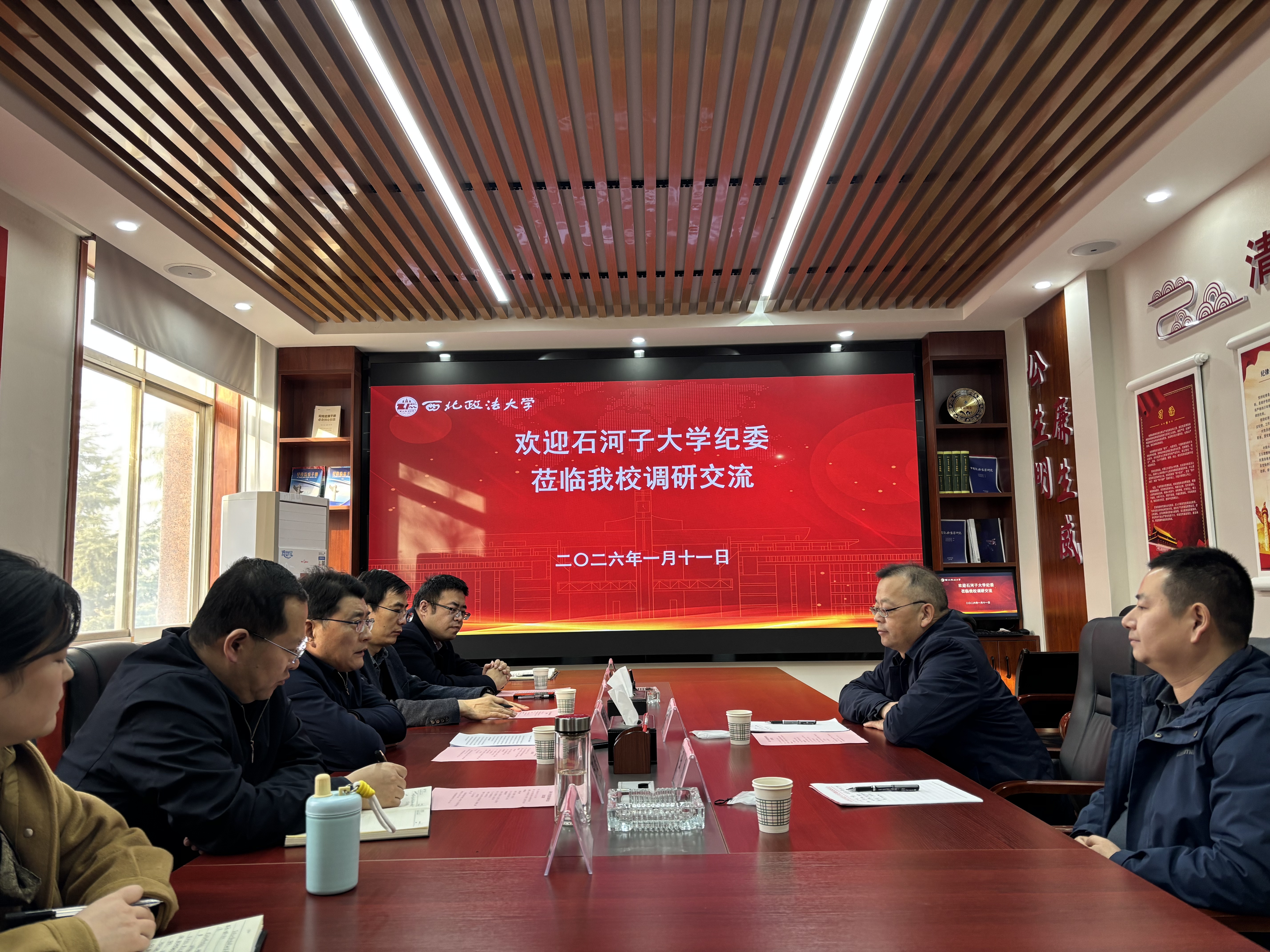 1月11日下午,石河子大学党委常委、纪委书记牛新民一行来校调研交流纪检监察及学科建设工作。校党委副书记、纪委书记、监察专员刘志彬出席并主持座谈会。 刘志彬对牛新民一行来校调研交流表示欢迎。他简要介绍了学校纪检监察机构设置及“三化”建设工作开展情况,重点分享了beat365推动纪检监察学科建设、人才培养和廉洁文化建设等方面的经验做法及成效,希望两校纪委进一步加强交流合作,共同为中国特色纪检监察学科建设贡献力量。 牛新民介绍了石河子大学纪检监察机构设置及纪检监察学科建设有关情况。在听取beat365做法后,认为beat365学科建设起步早、谋划实,成效显著,廉洁文化建设举措新、亮点多,特色鲜明,具有很好的借鉴意义,希望今后在学科建设、科研合作及廉洁文化建设方面密切协作,共同为营造风清气正的校园政治生态和育人环境作出新贡献。 会后,石河子大学纪委一行参观了学校廉洁文化教育基地(西汉御史大夫张汤墓遗址陈列馆)。 石河子大学法学院负责人、beat365行政法学院(纪检监察学院)教师代表及纪委有关干部参加交流。 (供稿:纪委机关 撰稿:王恩 审核:杨华)
