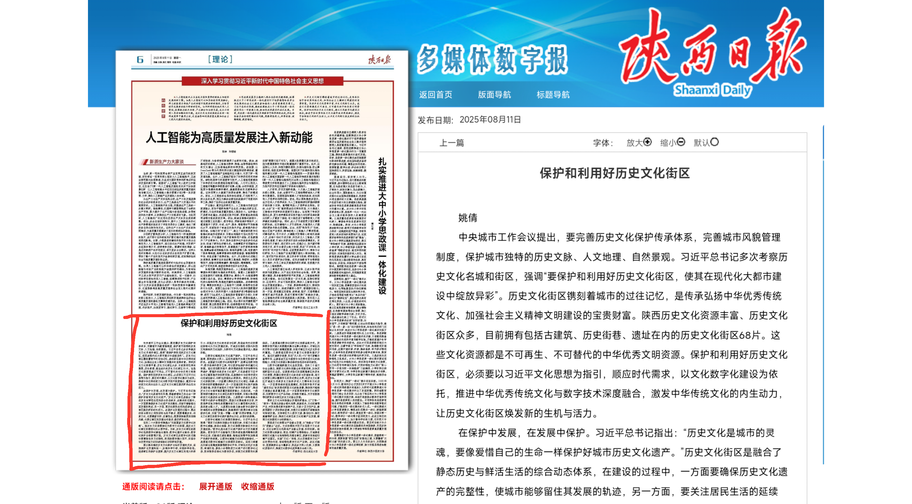 【陕西日报】姚倩:保护和利用好历史文化街区
