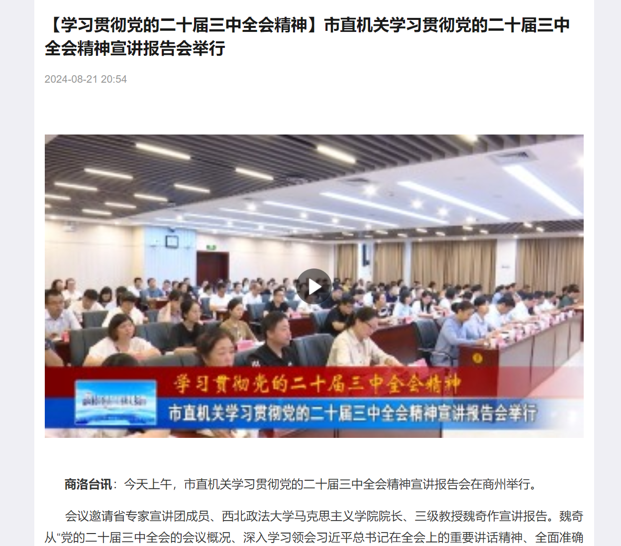 【商洛新闻联播】beat365魏奇教授为市直机关作学习贯彻党的二十届三中全会精神宣讲报告