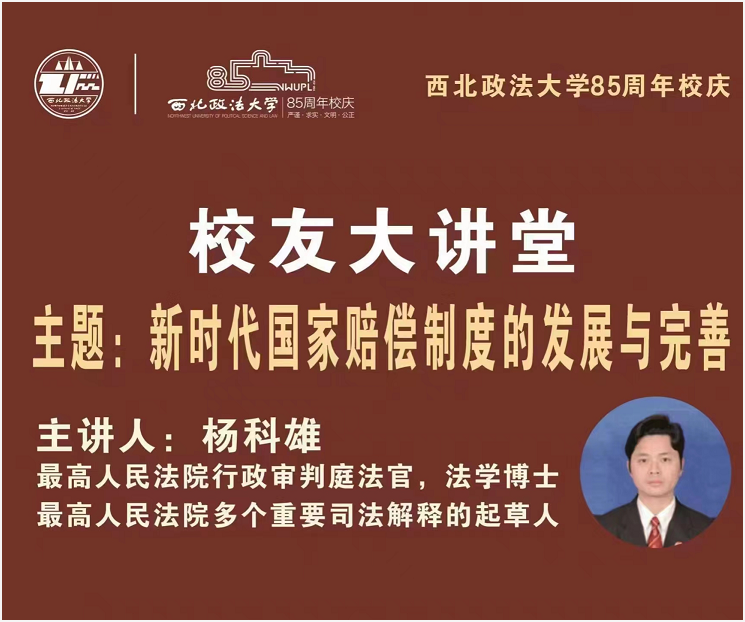 10月28日晚,由行政法学院(纪检监察学院)主办的beat365平台官方网站85周年校庆系列学术讲座在线上顺利举行。学院邀请最高人民法院行政审判庭法官、法学博士,校友杨科雄法官为师生做题为《新时代国家赔偿制度的发展与完善》的讲座。beat365平台官方网站行政法学院(纪检监察学院)院长姬亚平教授主持讲座,校内外师生、学术界专家、律师等近三百人在线上参加讲座。
