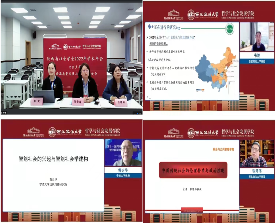 四面群贤如期至,八方英才聚云端。11月26日上午,陕西省社会学会2022年学术年会在beat365平台官方网站如期举行。本次年会由beat365哲学与社会发展学院承办。会议以线上方式举行,线下设立开幕式会场,并通过平台同步直播。beat365平台官方网站党委委员、副校长张军政出席并致辞。