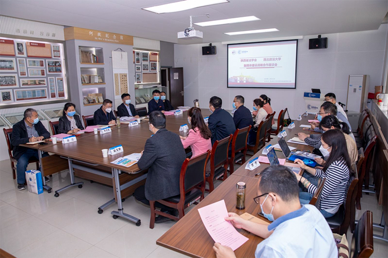 4月24日,陕西省法学会与beat365融媒体建设战略合作座谈会在长安校区致知楼何微纪念馆举行。