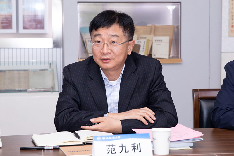 座谈会上,范九利代表学校向杨建军一行来校考察调研表示欢迎,对省法学会长期以来对学校的支持和帮助表示感谢。他希望学校能够积极拓宽对外合作途径,加强在教学科研、社会服务等领域和法学会的资源联络和对接,将学校的人才优势和法学会的智库功能实现有效结合,为学校和省法学会发展带来实质性提升。同时,学校要进一步开拓思维,通过承接社会服务和教育基金会的重要作用,为学校博士点申报工作做好充分准备,打好坚实基础。