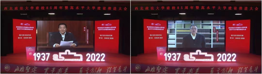 中国政法大学校长马怀德和西北大学校长郭立宏代表兄弟院校,向学校全体师生员工和海内外校友致以热烈的祝贺和美好的祝愿,希望校际之间可以加强协作,为新时代法学教育事业和法治中国建设贡献新的更大力量。