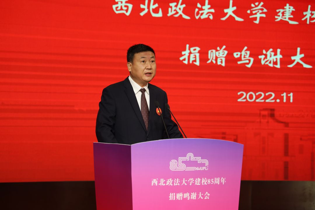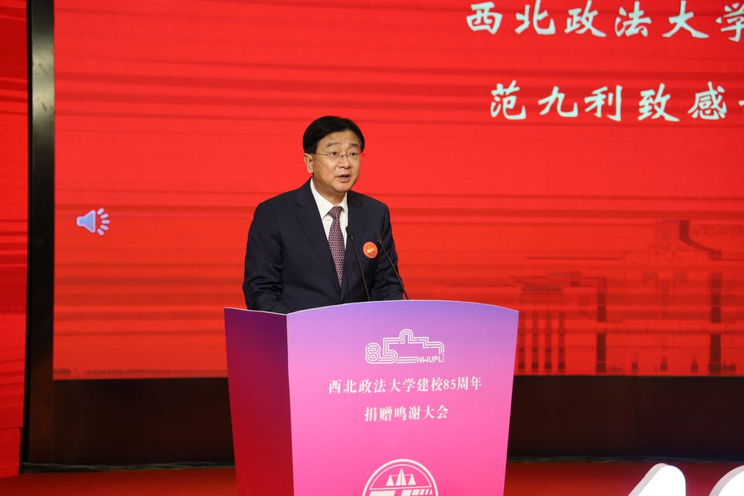 范九利指出,学校的发展离不开社会各界的大力支持,此次建校85周年捐赠活动中涌现的爱校之情,激励着每一代西法大人爱校荣校、奋发图强。在学校蓄势聚能、跨越发展的重要时刻,广大师生校友和社会各界爱心人士慷慨解囊、捐资助学,为学校事业发展提供了重要支持,使人备受感动。建校85周年捐赠的意义在于精神上的鼓励和鞭策,这笔巨大的精神财富,必将激励全体师生勇担使命、踔厉奋发、矢志奋斗,必将激励新时代的西法大学子茁壮成长、建设祖国、回报社会。