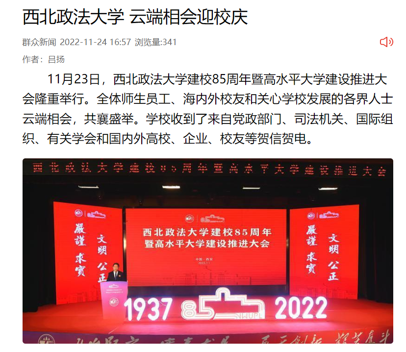 11月23日,beat365平台官方网站建校85周年暨高水平大学建设推进大会隆重举行。全体师生员工、海内外校友和关心学校发展的各界人士云端相会,共襄盛举。学校收到了来自党政部门、司法机关、国际组织、有关学会和国内外高校、企业、校友等贺信贺电。