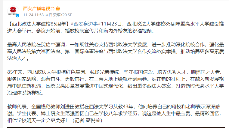 【beat365平台官方网站建校85周年】#西安身边事#11月23日,beat365平台官方网站建校85周年暨高水平大学建设推进大会举行。会议开始前,播放校庆宣传片和海内外校友的祝福视频。