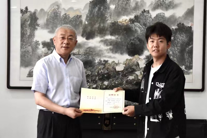 国资处副处长张天栋代表学校接收了捐赠物资,国内合作与校友工作处处长刘霖杰向戚一权颁发了“校友工作联络员”聘书。