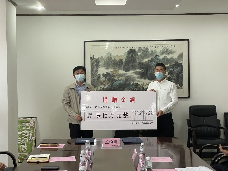 后勤保障处处长陈建宁、石云分别代表学校和西安众邦餐饮有限公司签署捐赠协议。