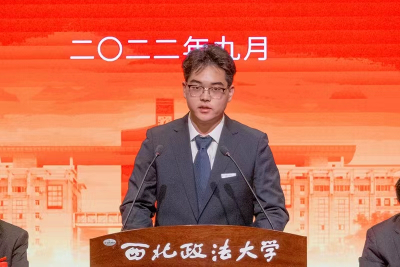 西安市优秀学生干部、哲学与社会发展学院2022级哲学1班景驰皓同学代表本科新生郑重承诺:将以实现中华民族伟大复兴为己任,树立远大理想,刻苦钻研学习,锐意进取创新,接续伟大奋斗,努力成为德法兼修、明法笃行、理实并重的优秀大学生。