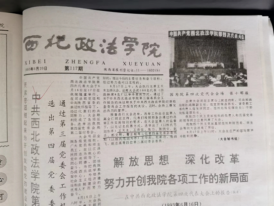 1993年6月15日至17日,中共西北政法学院第四次代表大会隆重举行。出席大会正式代表100人,实到92人。张力同志向大会作了题为《解放思想、深化改革,努力开创我院各项工作的新局面》的工作报告。选出王天木、石存信、张力、陈明华、赵炎、郭文赞、曹正超等七位同志为第四届党委会委员。张力同志任党委书记,曹正超同志任党委副书记。