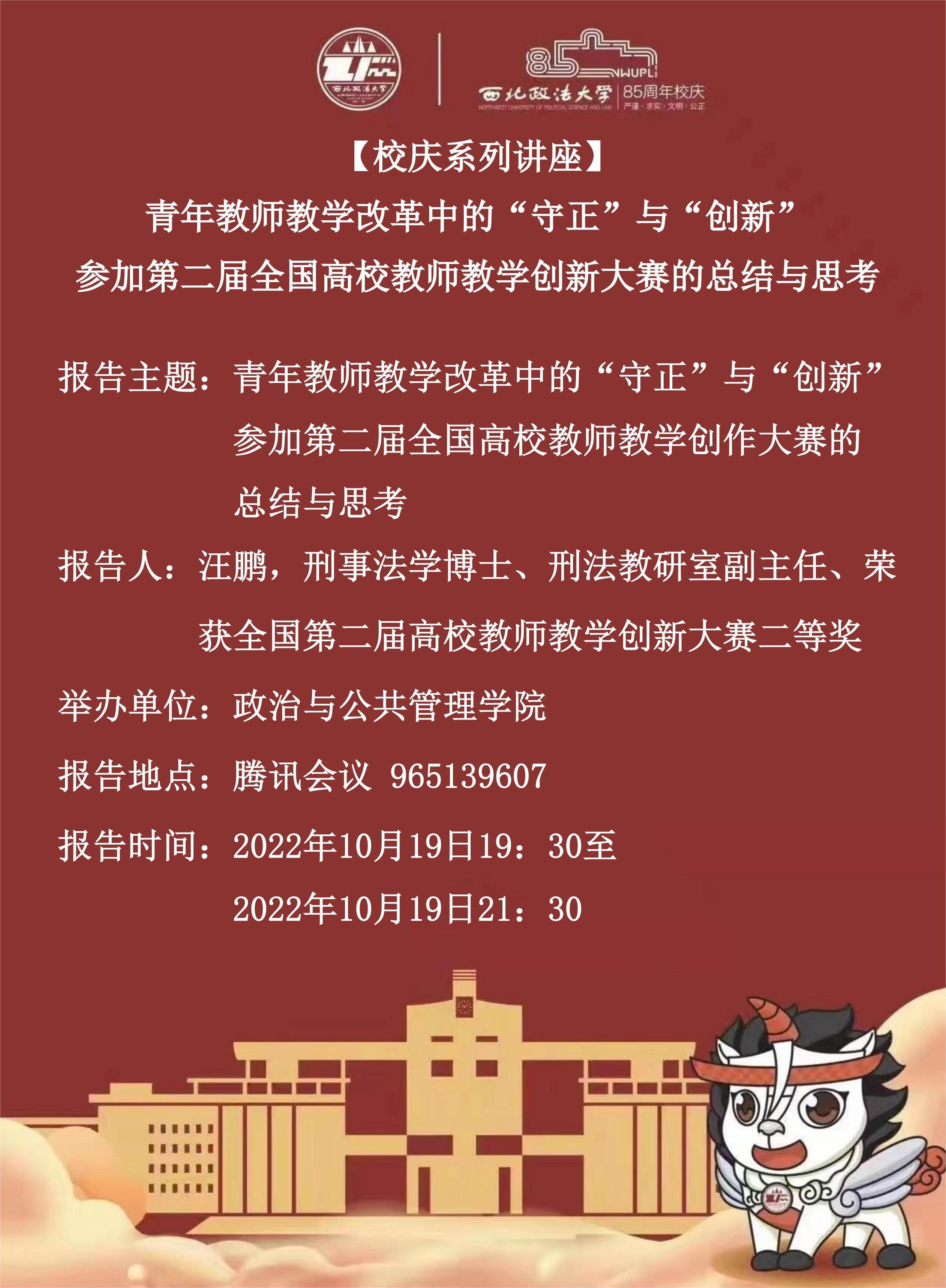 【校庆系列讲座】青年教师教学改革中的“守正”与“创新” -参加第二届全国高校教师教学创新大赛的总结与思考