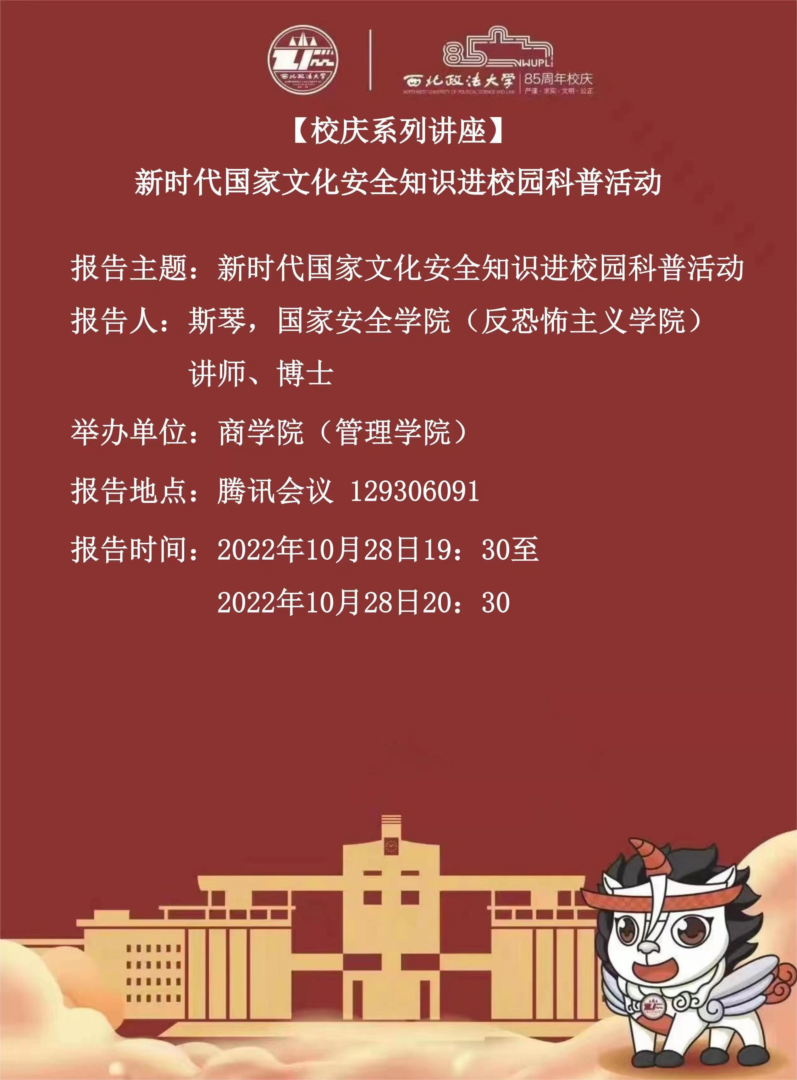 【校庆系列讲座】新时代国家文化安全知识进校园科普活动