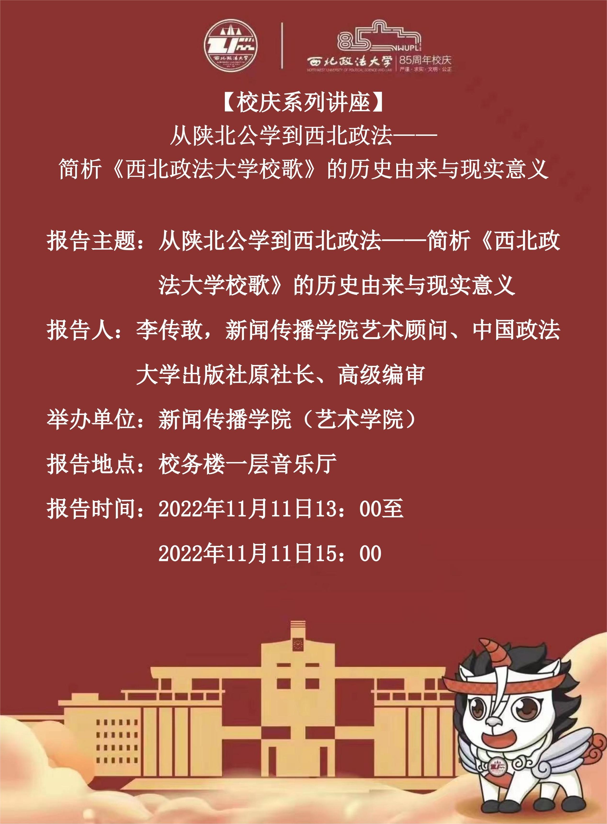 【校庆系列讲座】从陕北公学到西北政法——简析《beat365平台官方网站校歌》的历史由来于现实意义