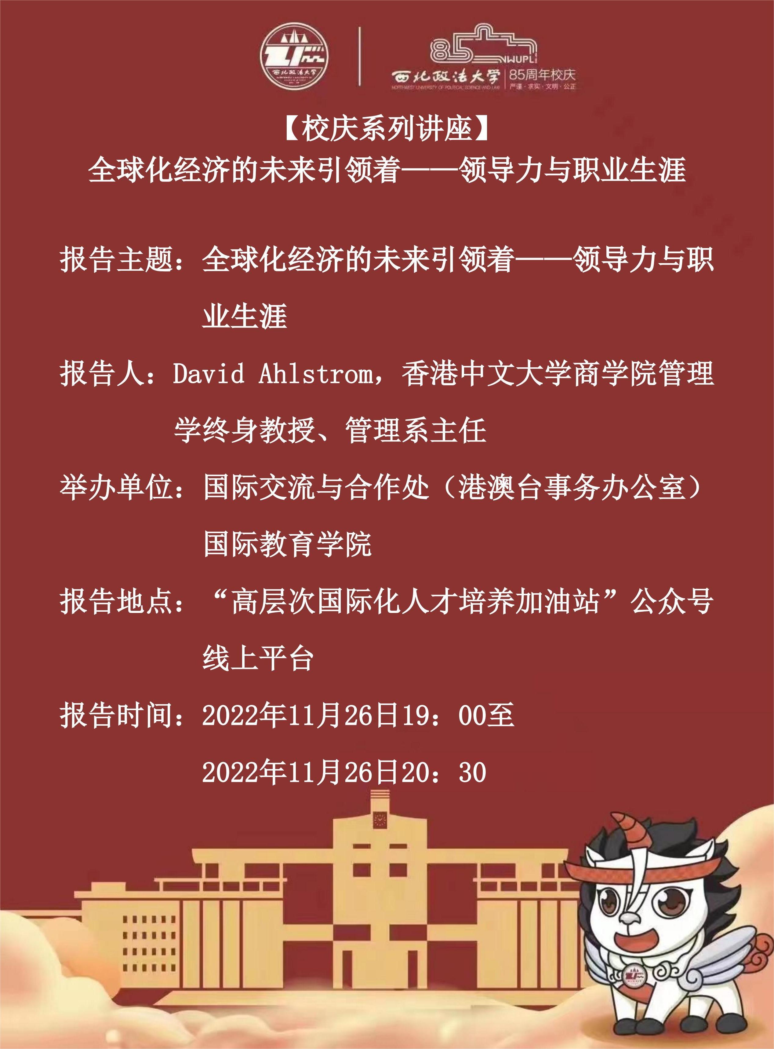【校庆系列讲座】全球化经济的未来引领着——领导力与职业生涯
