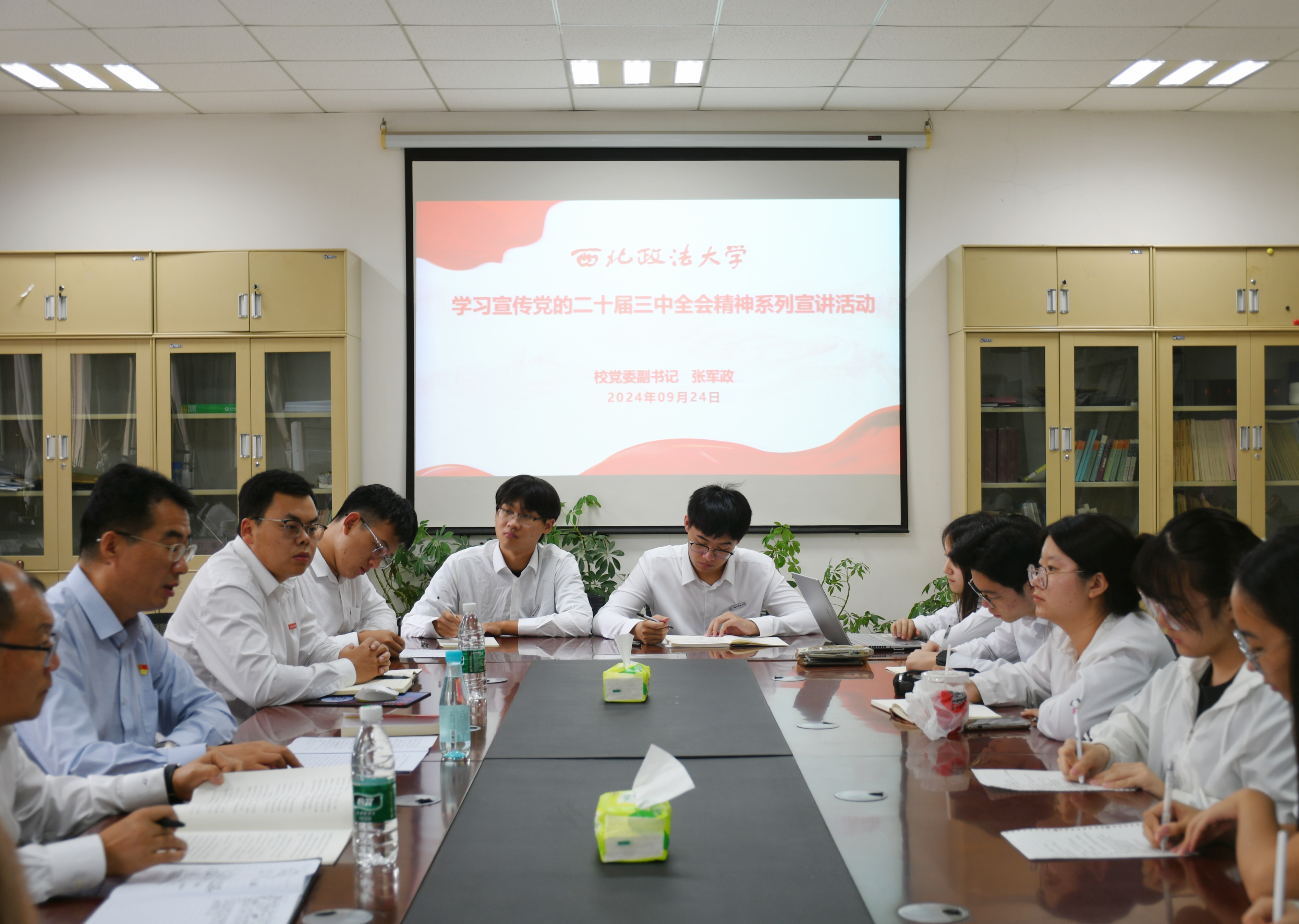 为深入学习贯彻党的二十届三中全会精神,教育引导广大学子全面准确理解全会精神的丰富内涵和深刻意义,9月24日下午,校党委副书记张军政在民商法学院会议室开展党的二十届三中全会精神专题宣讲,学院党委书记朱茂主持。