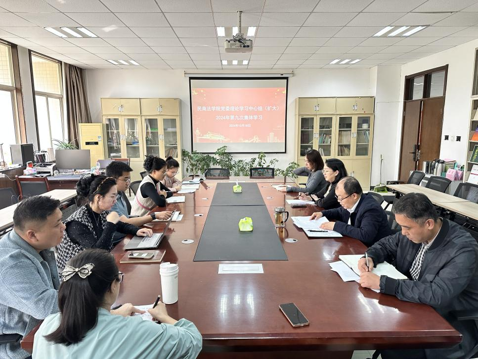 10月18日,民商法学院党委召开理论学习中心组(扩大)2024年第九次集体学习会议,党委理论学习中心组成员、行政人员、学工干部参加,学院党委书记朱茂主持。