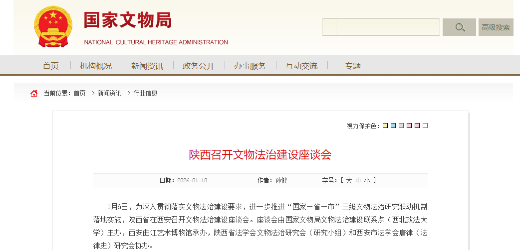 【国家文物局】陕西召开文物法治建设座谈会http://www.ncha.gov.cn/art/2026/1/10/art_723_200692.html