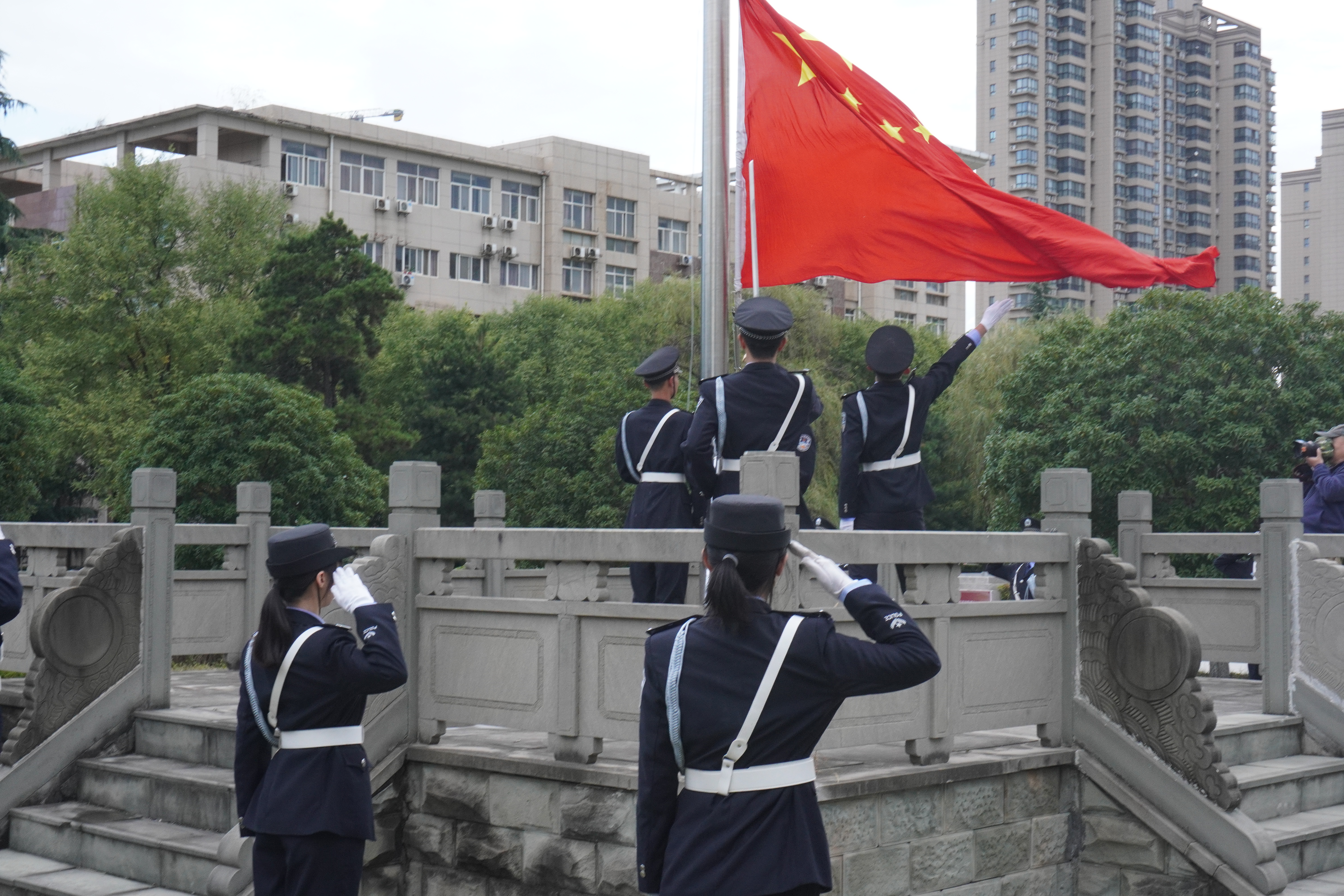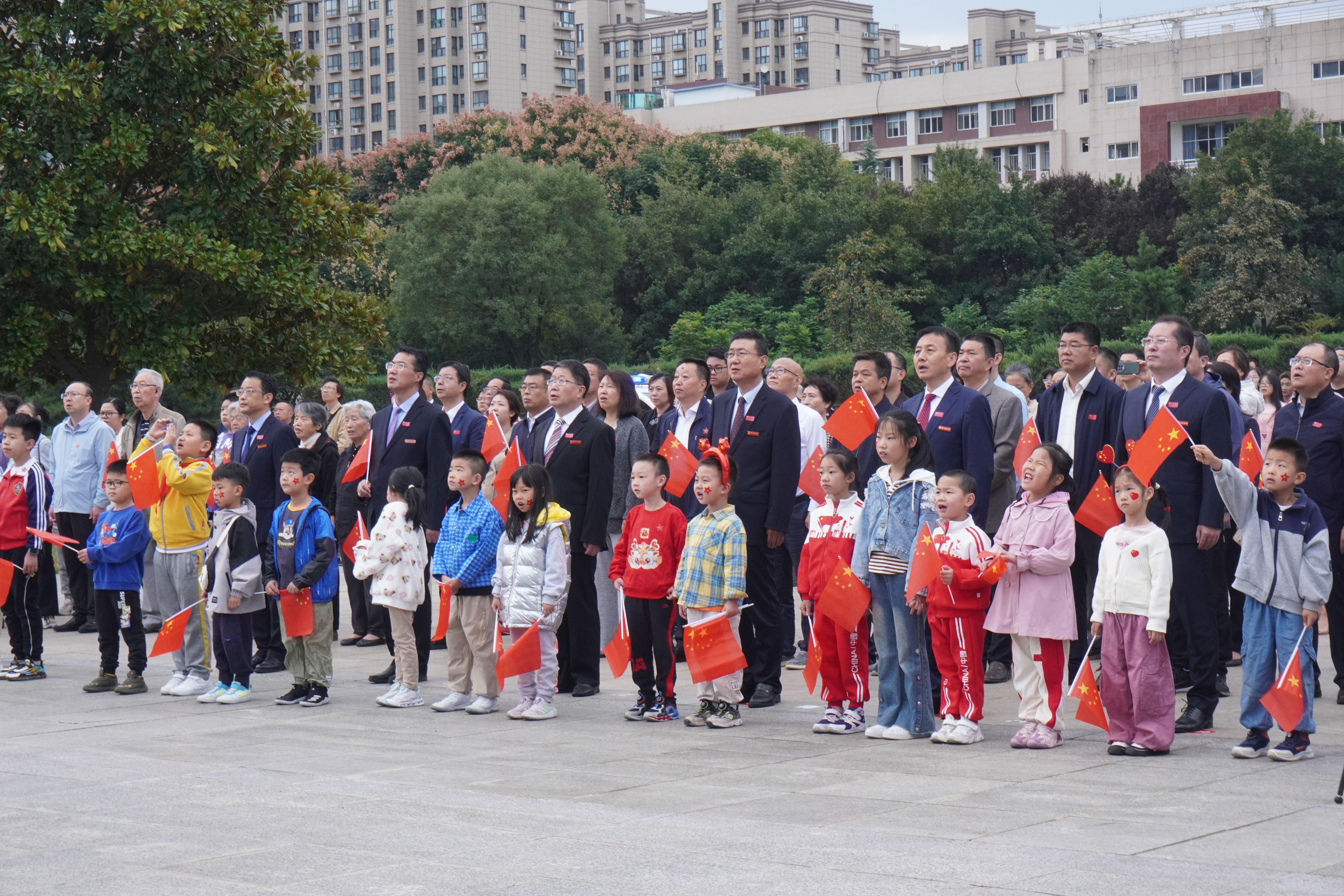 “五星红旗迎风飘扬,胜利歌声多么嘹亮。歌唱我们亲爱的祖国,从今走向繁荣富强……”。仪式落幕之际,伴随《歌唱祖国》的慷慨旋律,全体人员挥舞旗帜,共同祈愿祖国母亲繁荣昌盛、国泰民安。