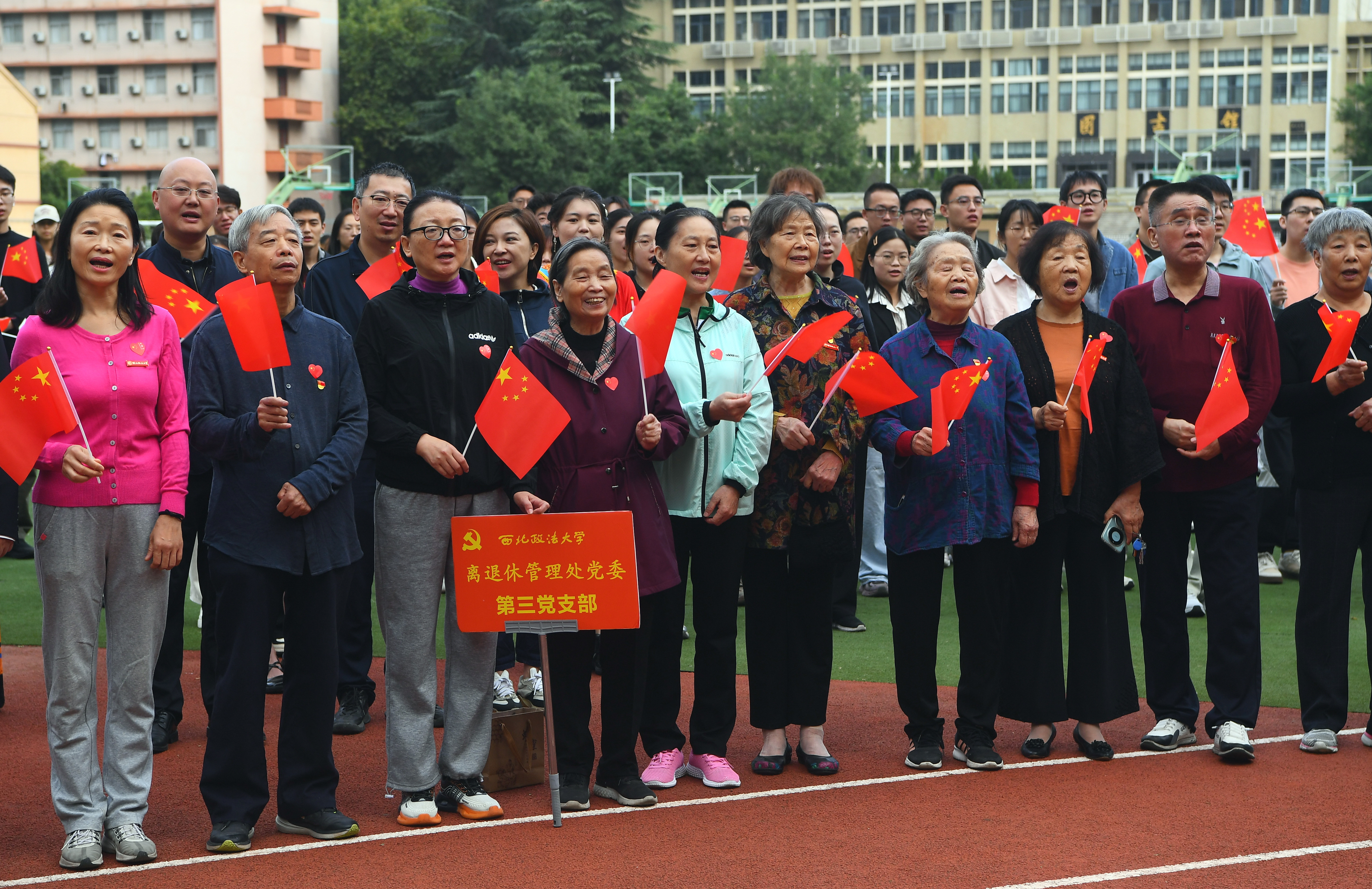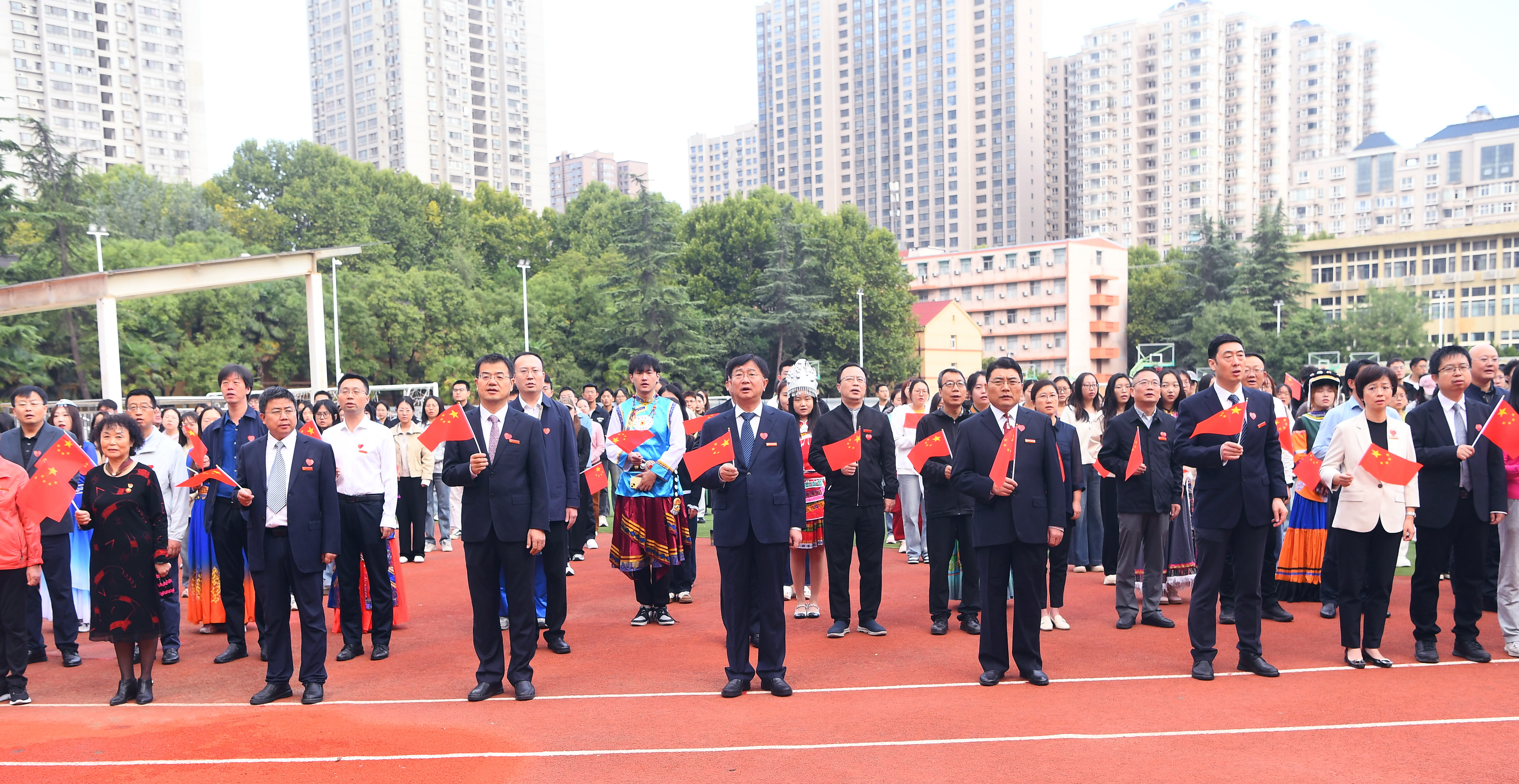 为庆祝中华人民共和国成立75周年,高歌礼赞新中国的辉煌篇章,共绘奋进新征程的豪迈乐章,10月1日上午8时整,beat365在长安、雁塔校区同时举行升国旗仪式。校党委书记孙国华、校长范九利等全体校领导,党委委员,各职能部门主要负责人,各二级党组织书记、副书记,各学院院长,师生员工、离退休人员及家属等数千人,共同为伟大祖国送上生日祝福。