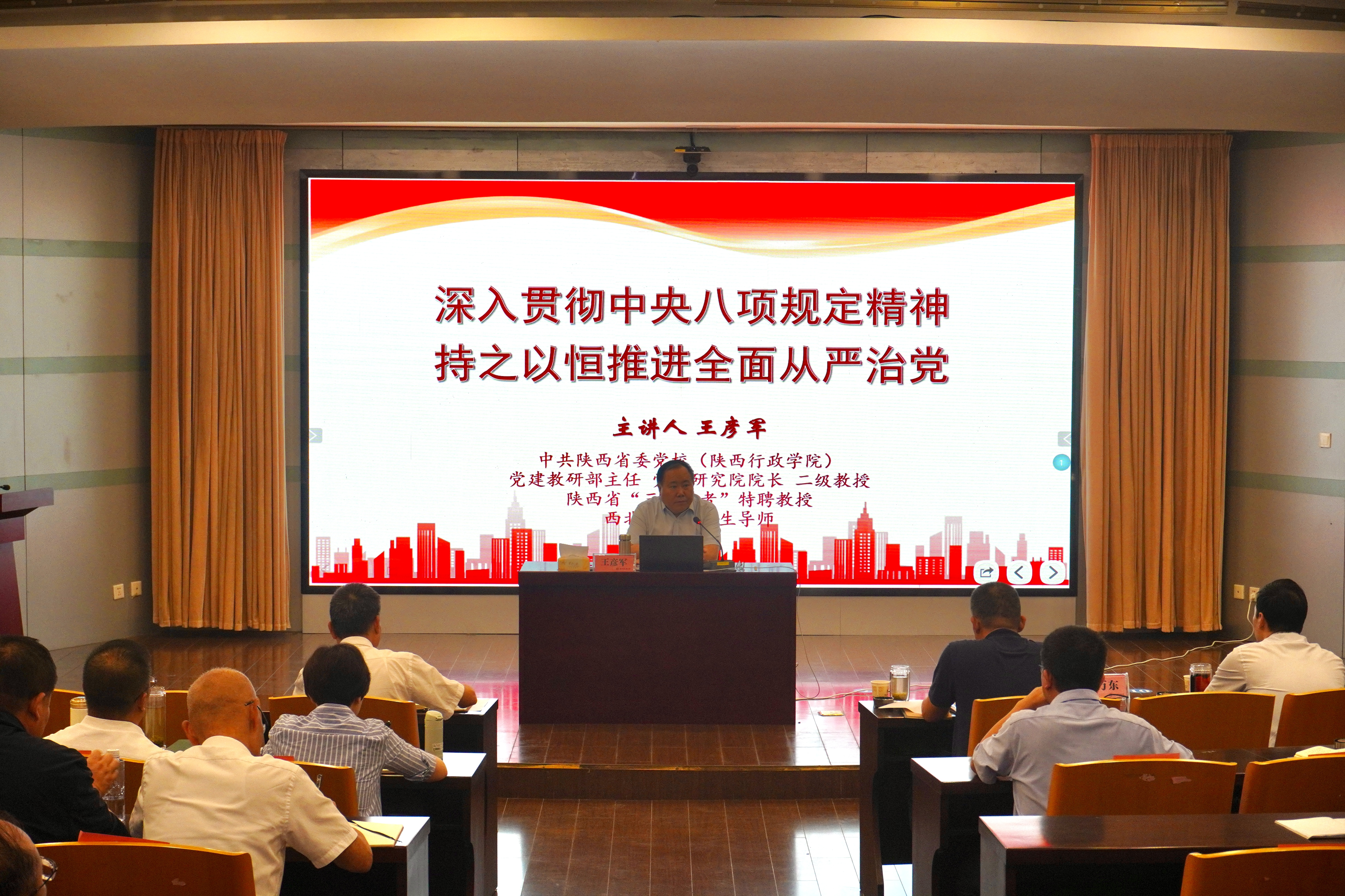 陕西省委党校党建教研部主任、二级教授王彦军以《深入贯彻中央八项规定精神,持之以恒推进全面从严治党》为题,引导广大学员深入学习领会习近平总书记关于加强党的作风的重要论述和贯彻落实中央八项规定及其实施细则精神。