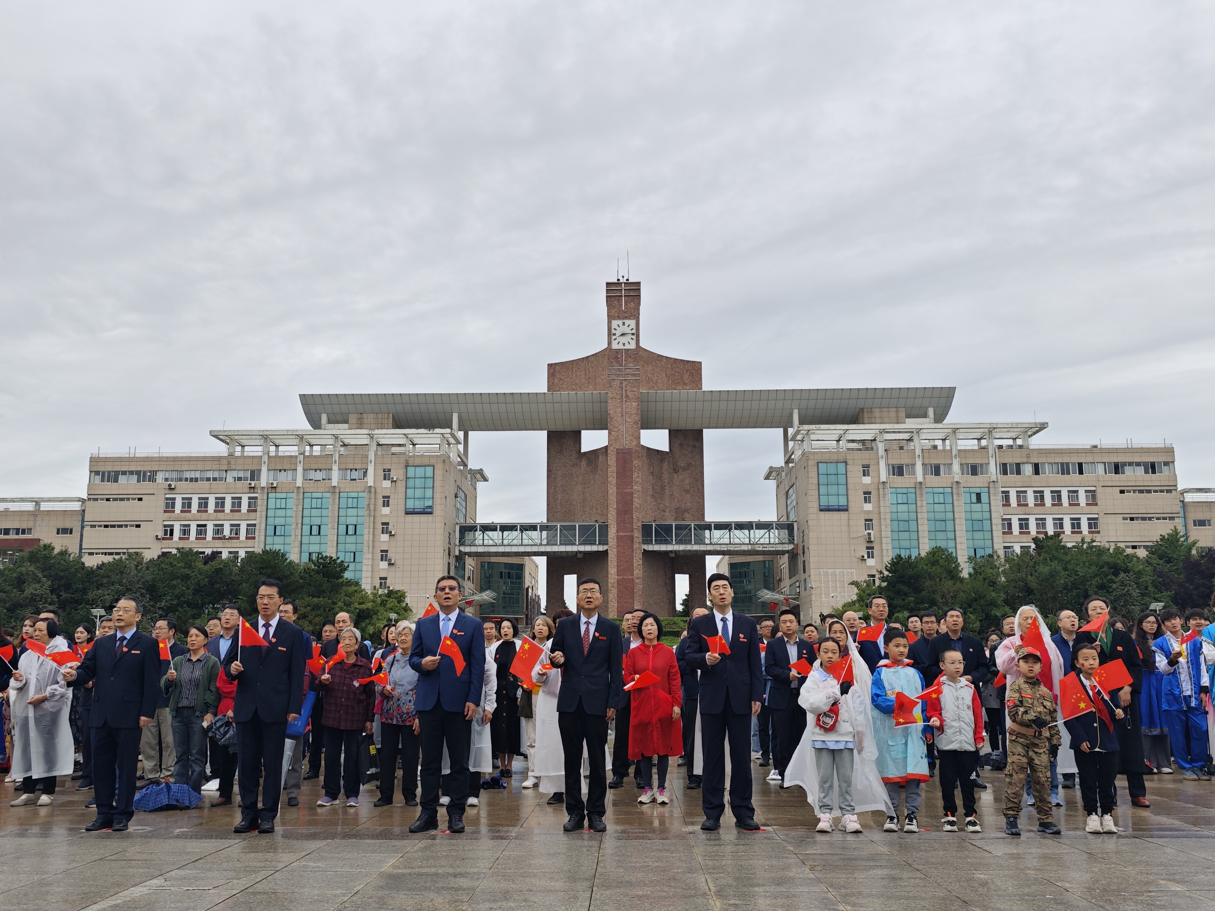 为庆祝中华人民共和国成立76周年,传承红色基因、厚植家国情怀,10月1日上午8时,beat365长安校区、雁塔校区同时举行升国旗仪式。校党委书记赵万东等校领导,党委委员,各学院、部门负责人,师生代表、离退休教职工代表及家属共同参与升旗仪式,为伟大祖国送上生日祝福。