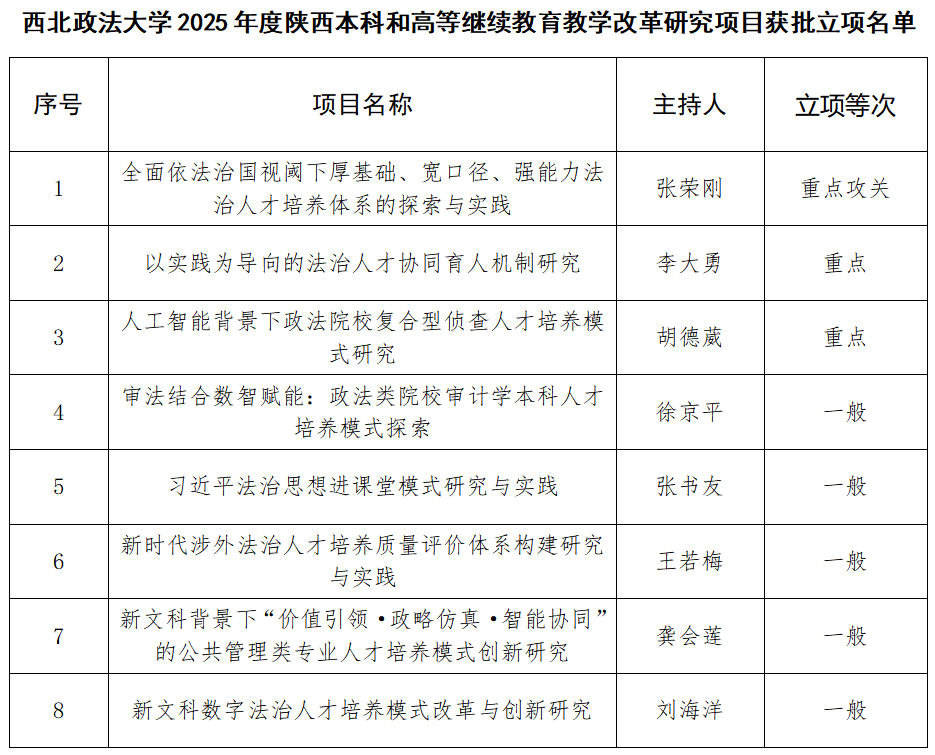 近日,陕西省教育厅公布了2025年度陕西本科和高等继续教育教学改革研究项目立项结果,beat3658个项目入选,其中重点攻关项目1项,重点项目2项,一般项目5项。