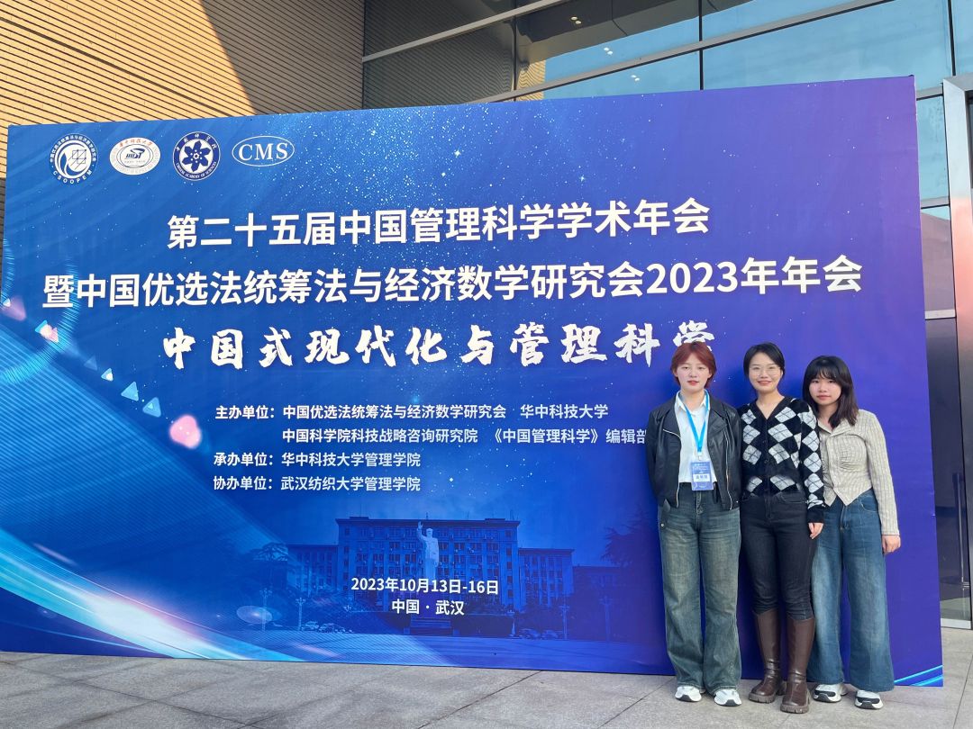 10月14日至15日,第二十五届中国管理科学学术年会暨中国优选法统筹法与经济数学研究会2023年年会在武汉召开。我院2022级市场营销与危机管理专业研究生孟敏霞、隗晓丹,2023级数字治理专业研究生陈娜娜参加会议。