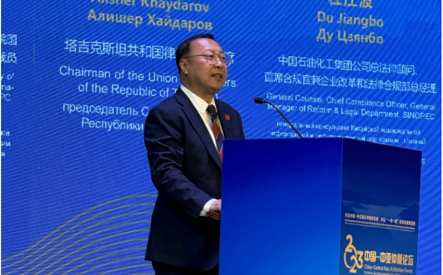 圆桌讨论环节由王瀚主持。塔吉克斯坦律师协会会长Alisher Khaydarov,中国石油化工集团公司总法律顾问、首席合规官兼企业改革和法律合规部总经理杜江波,孟加拉国际仲裁中心代表、孟加拉最高法院出庭律师Ajmalul Hossain,中国交通建设集团有限公司法律风控部总经理助理曹红程,中国电力国际有限公司法律与风险管理部/内控审计部总经理黄慧娜,吉尔吉斯斯坦中亚美国大学副教授Natalia Alenkina分别就仲裁助力新兴产业发展、科技创新与仲裁等多元争议解决方式、跨境投资贸易与法律风险防范等内容进行了分享与交流。
