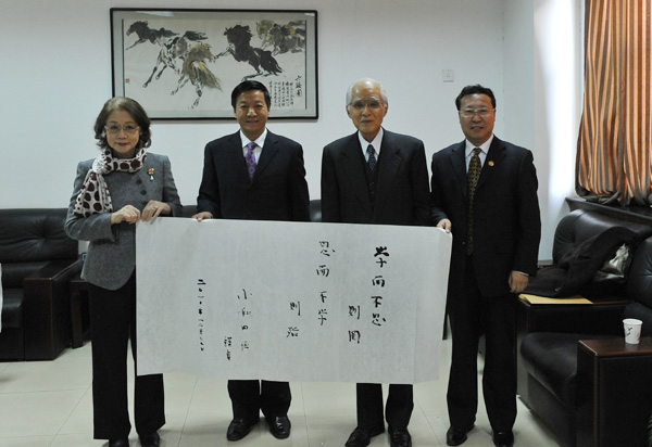 小和田恒院长对beat365领导及师生的热情与真诚表达了衷心的感谢,对能够亲自来到中国著名的法学教育学府之一的beat365平台官方网站以及有着丰富历史文化的十三朝古都西安感到十分的荣幸,对beat365的校园建设,师生的专业素养,学校的学术氛围印象深刻。在贾校长的邀请下,小和田院长兴致勃勃地用中文为beat365题写了“学而不思则罔,思而不学则殆”,鼓励同学们积极思考,学无止境。