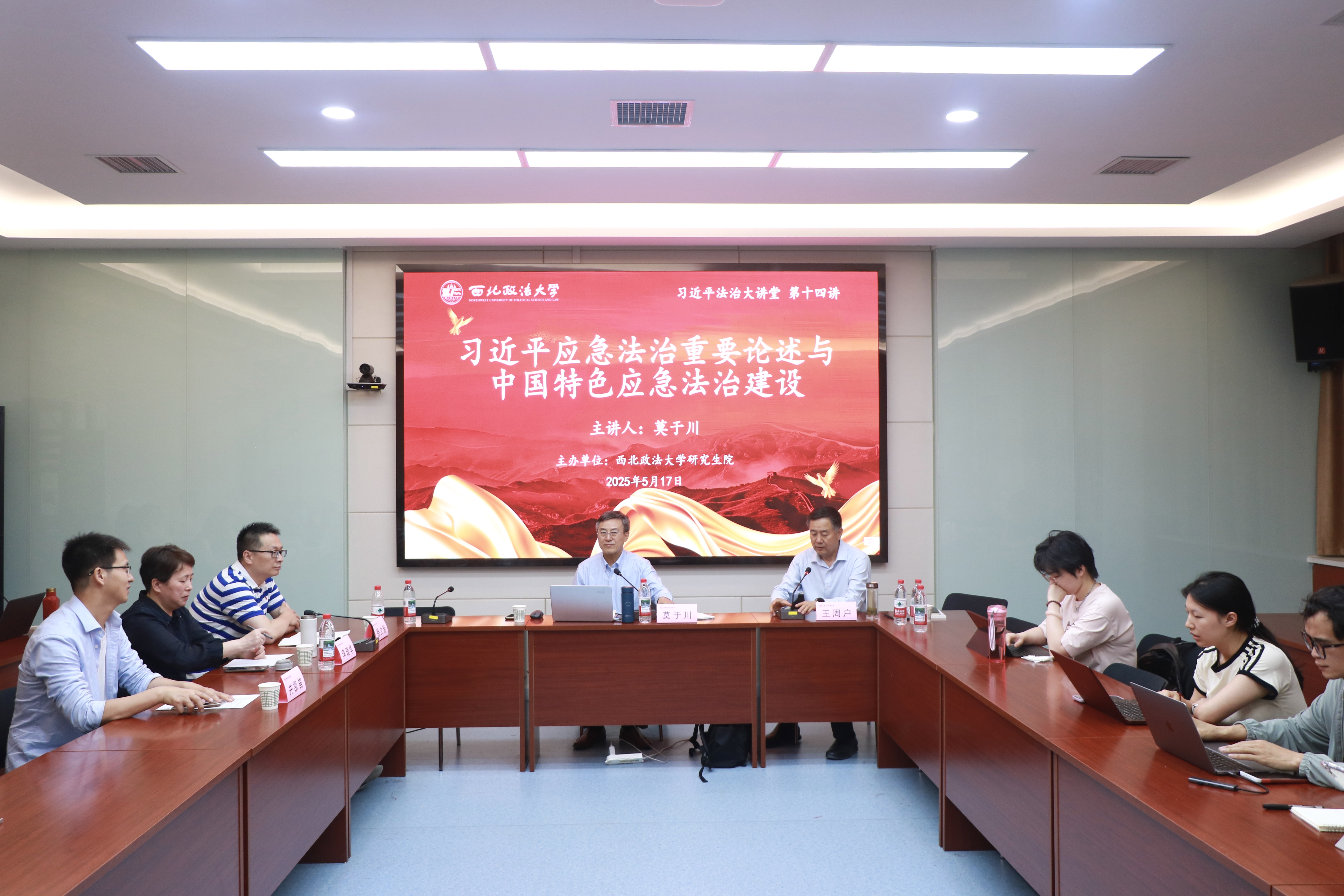 5月17日下午,由研究生院主办的“习近平法治思想大讲堂”在beat365平台官方网站雁塔校区人权研究中心会议室顺利举行。中国人民大学法学院莫于川教授作题为《习近平应急法治重要论述与中国特色应急法治建设——解读〈中华人民共和国突发事件应对法〉大修工程的创新亮点和后续课题》讲座,学校地方政府法治建设研究中心主任王周户教授主持,西安仲裁委员会副主任、秘书长徐文新,李瑰华教授、井凯笛副教授与谈。