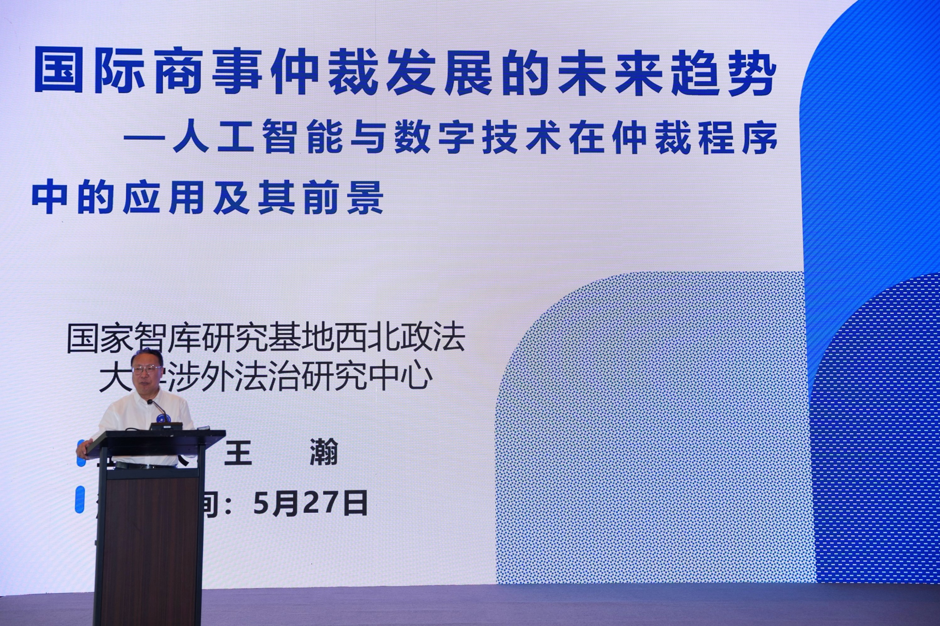 西安交通大学法学院副院长李万强教授主持主旨发言,王瀚、刘煦婷、西安仲裁委员会副主任兼西安仲裁院院长徐文新分别作主旨演讲。王瀚发表了“国际商事仲裁发展的未来趋势——人工智能与数字技术在仲裁程序中的应用与前景”的主题演讲,就“人工智能和数字技术在国际仲裁程序运用的政策导向”“人工智能和数字技术在仲裁程序中运用的场景——仲裁网络体系的运行”和“人工智能和数字技术在仲裁程序中运用的趋势与风险控制”三个问题进行深入阐释。